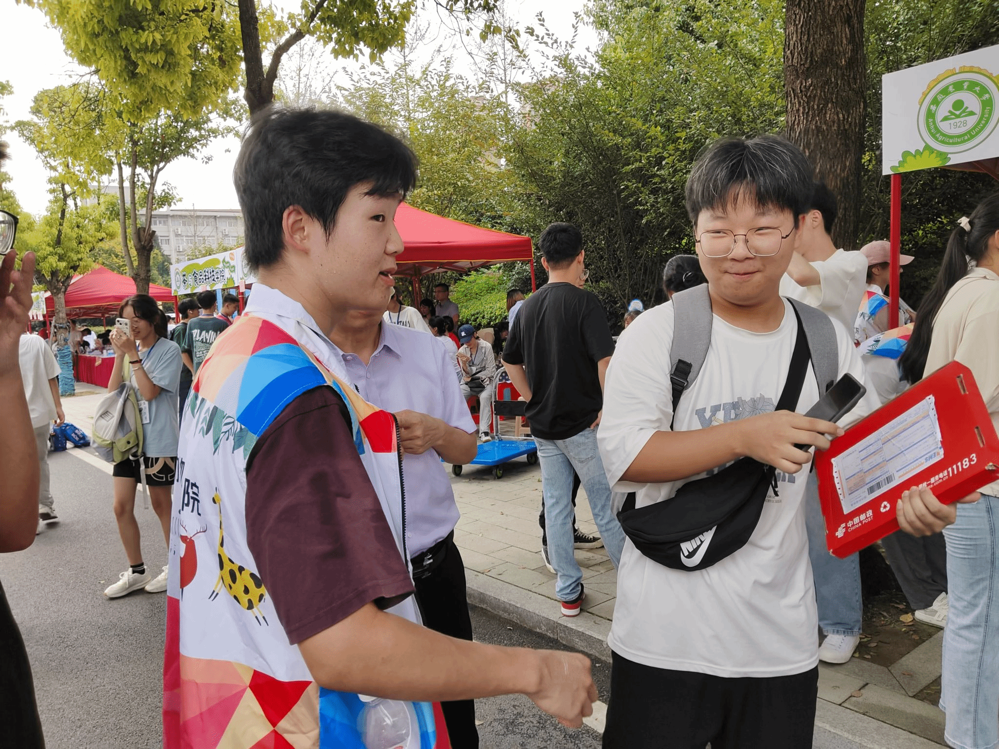 迎新期间,学院在北三门和生物科技楼、报到打卡点、接驳车服务点、新生宿舍服务点安排志愿者。一部分志愿者在北三门和生物科技楼迎新点迎接新生,引导新生完成签到报名及基本报到手续。另一部分志愿者带领新生携带行李前往宿舍,途中为新生介绍学校基本情况,耐心解答疑惑,传授学习、生活经验,缓解新生初来乍到的紧张与不适。