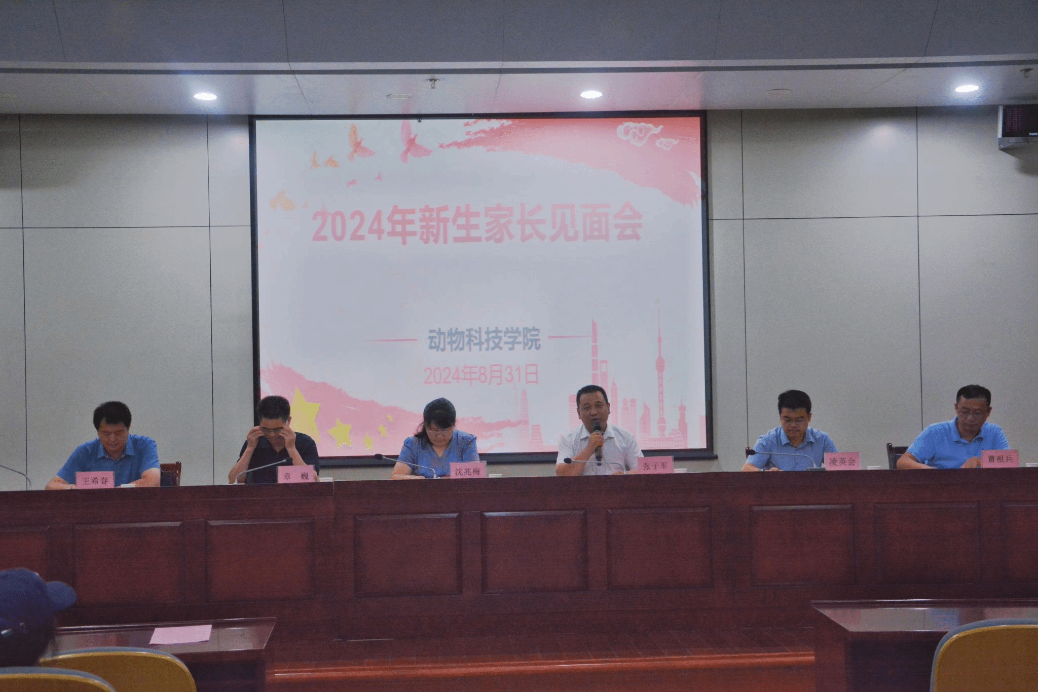 为了进一步做好学生培养工作,推进家校协同育人,帮助新生家长更好地了解学院情况。8月31日下午学院在图书馆第二报告厅举办2024级新生家长见面会。学院全体班子成员、各系主任、2024级新生辅导员以及新生家长参加了见面会。会议由学院党委副书记章巍主持。与会领导和老师分别从学校和学院办学历史、发展历程、学科设置、科学研究、师资力量、人才培养、考研就业等方面向新生家长进行讲解和介绍,并分别对动物科学专业、动物医学专业、水产专业进行细致地讲解,现场气氛热烈温馨。学院也将不断加强家校合作,共同促进学生成长成才。