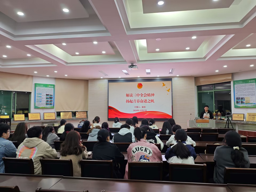 青年宣讲团以“解读三中全会精神,扬起青春奋进之帆”为主题,用“青言青语”解读二十届三中全会重要文件,帮助同学理解文件内涵,使同学们深刻认识到改革的重要意义与自身肩负的责任,激励大家在新时代新征程中,以更加饱满的热情和昂扬的斗志,为实现中华民族伟大复兴的中国梦贡献青春力量。