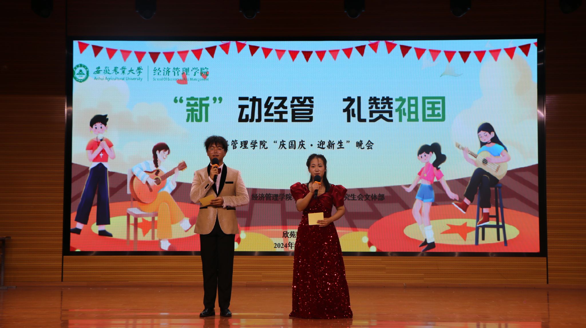 本网讯 为欢迎2024级新同学,营造良好的文化氛围,9月27日晚,经济管理学院学生会联合研究生会在欣苑小礼堂举办“‘新’动经管 礼赞祖国”庆国庆·迎新生晚会。经济管理学院党委副书记、纪委书记周涛及经济管理学院团委老师参加了本次活动,2024级本科新生共及研究生新生250余人到场观看。
