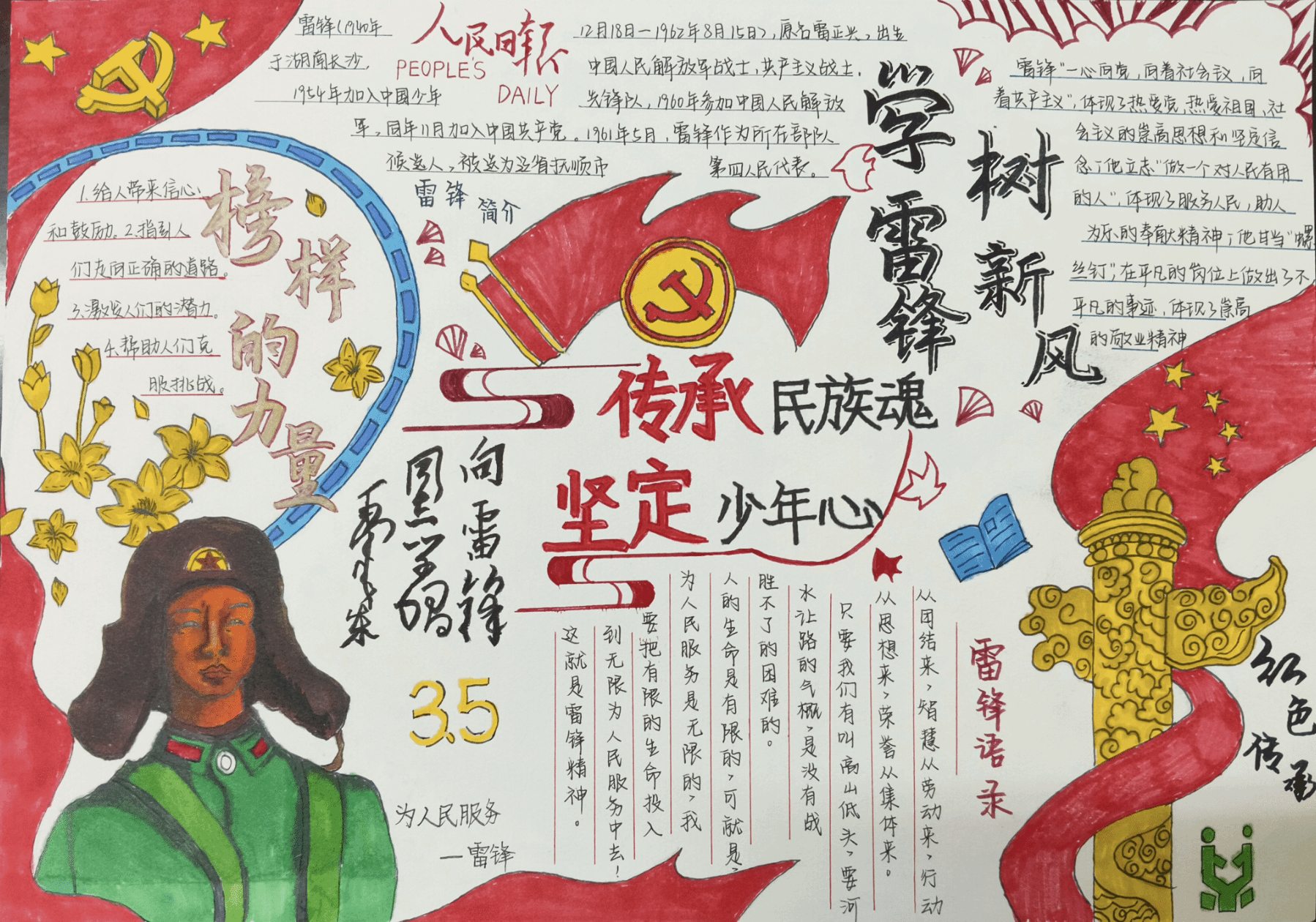 在文素作品中,《争做当代雷锋》获一等奖;《星光璀璨,精神永存》《传雷锋精神,践时代担当》获二等奖;《弘扬雷锋精神》《学习雷锋好榜样》《学雷锋,树新风》获三等奖。在积分作品中,《学习雷锋,从心做起》获一等奖;《雷锋精神永不褪色》《学雷锋,树新风手抄报》获二等奖;《三月春风暖人心,雷锋精神永不褪色》《学雷锋,树新风》《学雷锋,做时代青年》获三等奖。