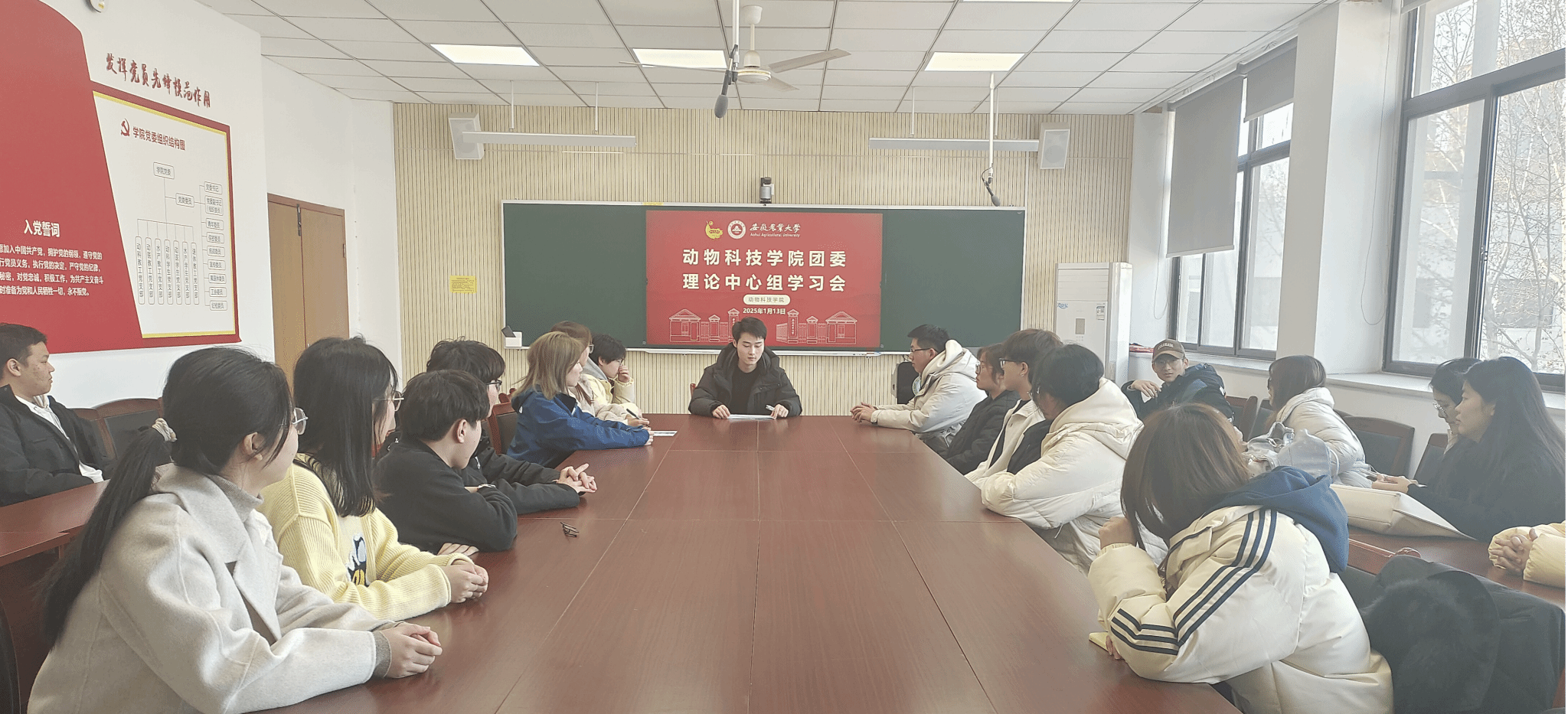 本网讯 1月13日中午,动物科技学院在306会议室召开团委理论学习中心组会议,院团委负责老师、团委理论学习中心组成员、学生会骨干参加会议。会议由院团委负责老师侯坤主持。