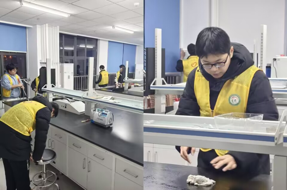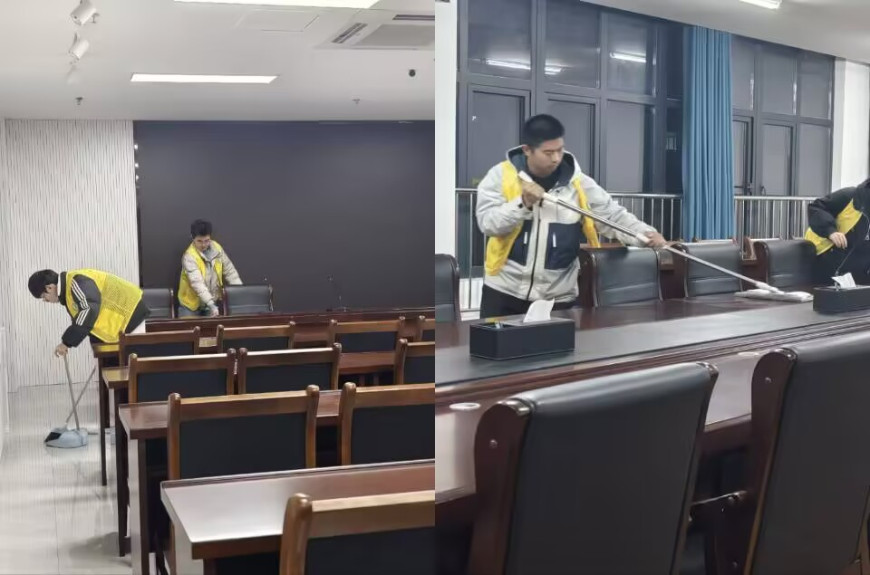 志愿者们准时在朝阳楼前集合,手持扫帚、垃圾袋、抹布等清洁工具,分组对朝阳楼内外进行了全面清扫。活动过程中,志愿者们分工明确,有的负责清理会议室垃圾,有的擦拭栏杆扶手,还有的扫地 除尘。尽管天气微凉,但大家的热情丝毫不减,充分展现了新时代青年学子乐于奉献、团结协作的精神风貌。朝阳楼上下焕然一新,为师生营造了一个更加整洁、舒适的学习工作环境。