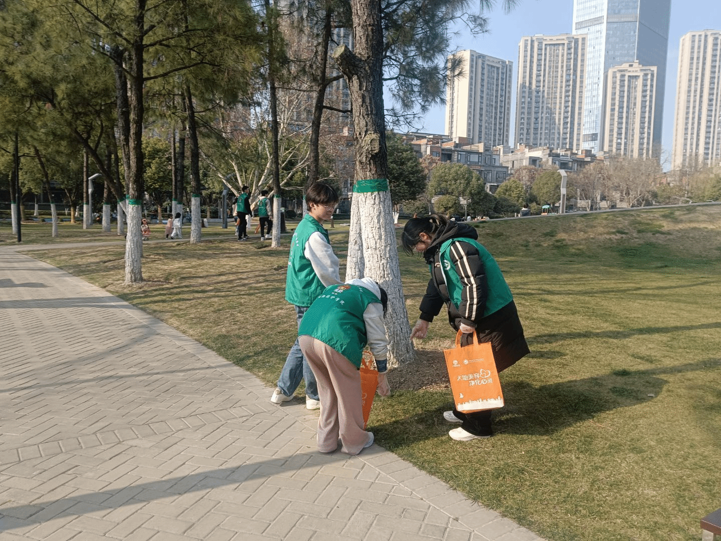 同学们身穿统一的绿色志愿服,拎着橙色垃圾袋,沿着四里河河岸仔细搜寻垃圾。从步道到草地,从树根旁到灌木丛中,纸屑、包装袋、废弃杂物等都被一一清理。志愿者们分工协作,默契配合,不怕脏、不怕累,只为让河流重归洁净。