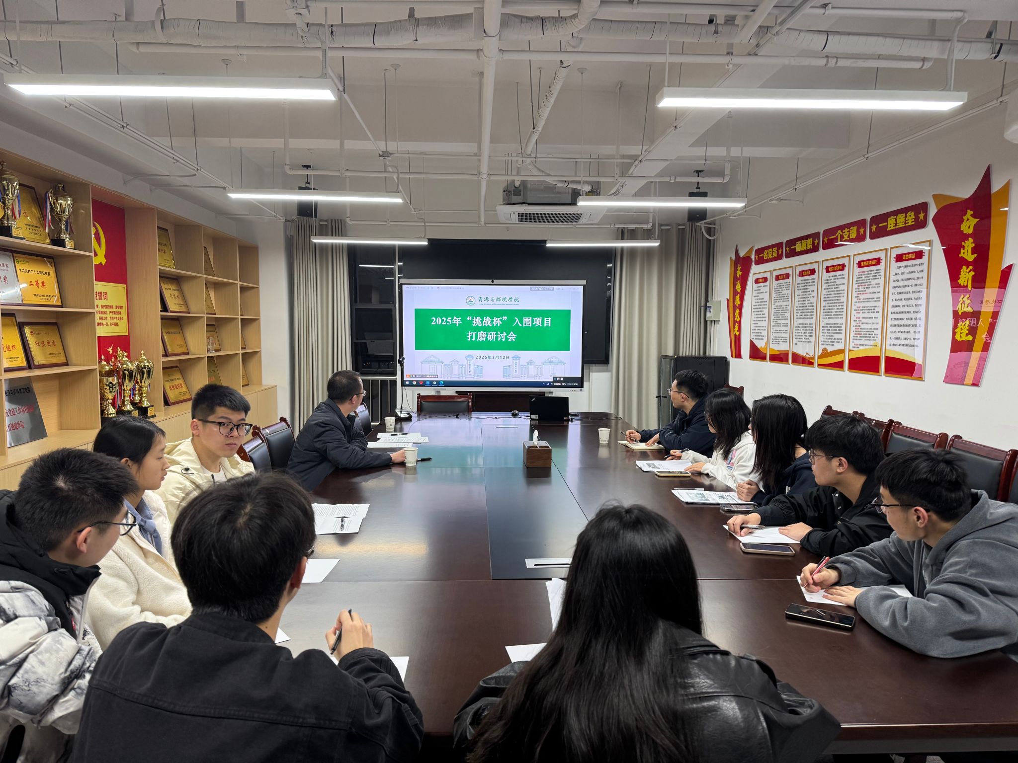 本网讯 为进一步激发我院学生的创新精神和实践能力,提升参赛项目质量,3月12日晚,资源与环境学院举办了第十七届“兴农杯”大学生课外学术科技作品研讨打磨会。会议邀请了教育部双创竞赛优秀指导教师、国赛金奖指导教师、合肥工业大学马飞教授进行指导,项目指导老师以及各项目成员参会,会议由学院党委副书记毛晓文主持。