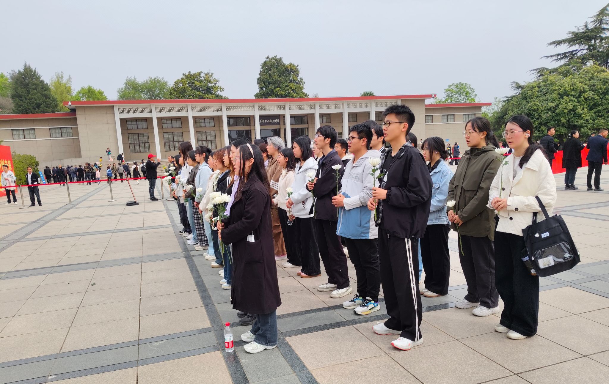 到达活动现场后,师生们怀着崇敬的心情集体前往蜀山烈士陵园。在庄严的国歌声中,师生们集体默哀一分钟,向为国家和人民献出生命的英烈致以深切哀悼。春日的陵园松柏苍翠,庄严肃穆,仿佛在无声诉说着先烈们的英勇事迹。随后,同学们缓步上前,朵朵白菊寄托着无数革命英烈们的无限追思与崇高敬意。