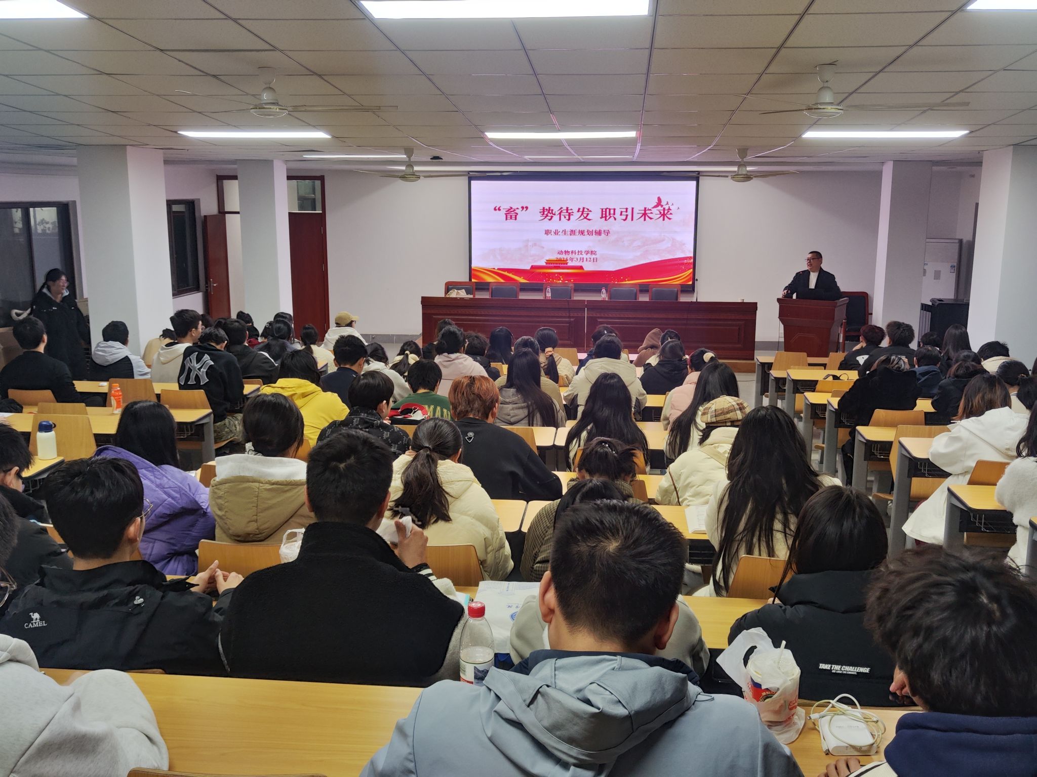 本网讯 3月19日,学院在318会议室举办“‘畜’势待发 职引未来”职业生涯规划辅导讲座,讲座特邀政道教育董事长陈一铭作题为《剖析自我、筑梦启程》专题报告,会议由学院党委副书记卢伟主持。