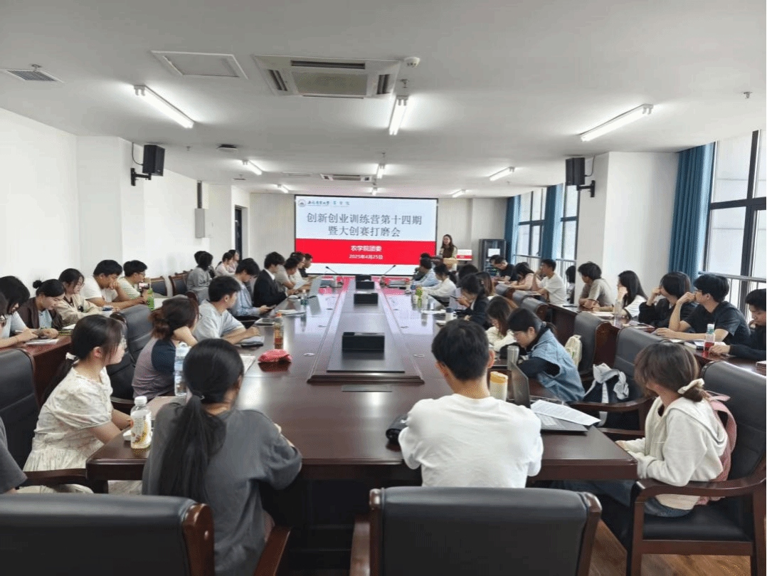 本网讯 为了激发农学院学生创新潜力,以赛促教,以赛促学,4月25日下午,农学院在朝阳楼208会议室举办创新创业训练营第十四期打磨会。教务处副处长兼创新创业学院副院长张志平、农学院党委副书记冯峰、农学院副院长卢杰、工学院教师吴蒙然出席会议,农学院13支队伍参加打磨。