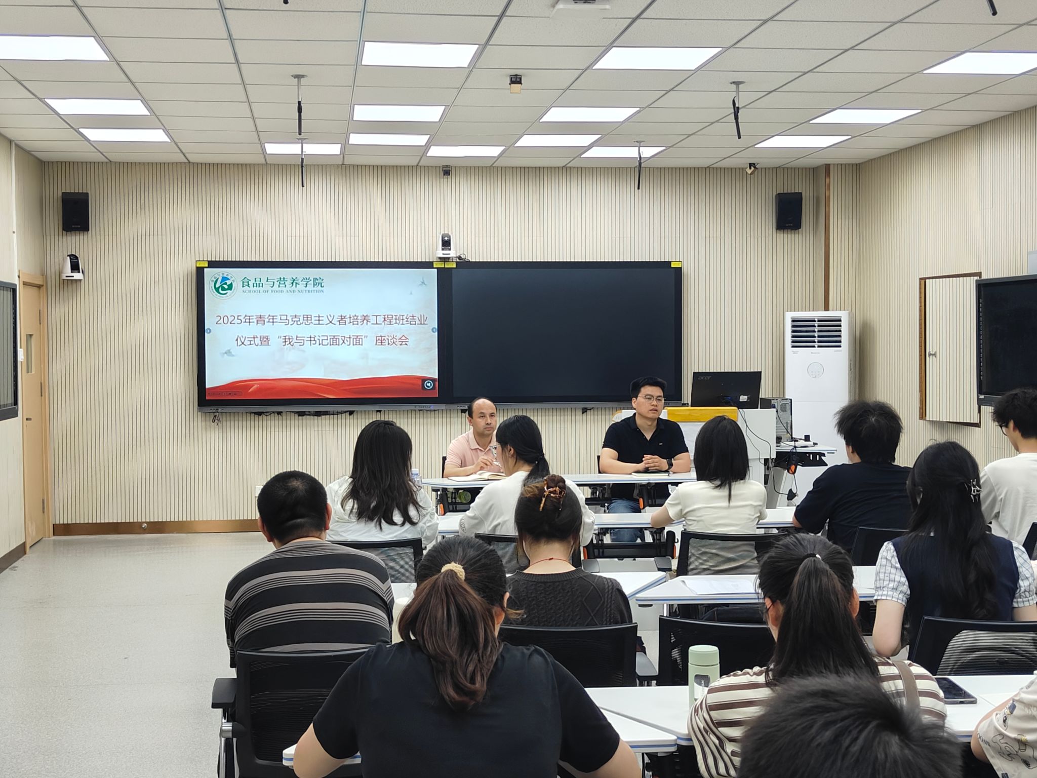 本网讯 5月22日晚,食品与营养学院举办2025年青年马克思主义者培养工程结业仪式暨“我与书记面对面”座谈会,院党委书记孙福出席,与青马工程学员们齐聚一堂,共话成长与发展。