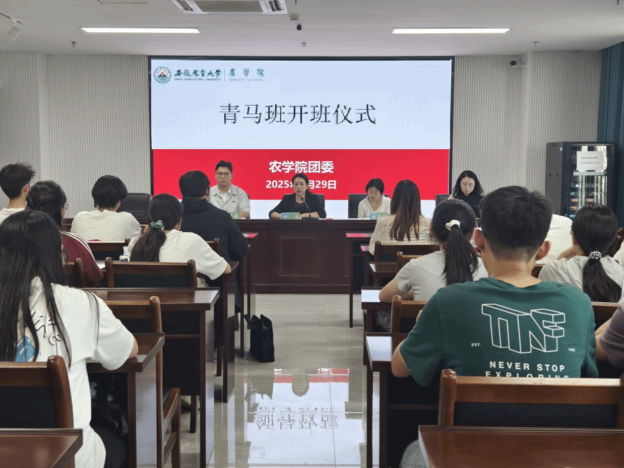 本网讯 为深入贯彻落实习近平总书记关于青年工作的重要指示精神,深化大学生马克思主义政治思想教育,扎实推进学院“丰穗行动”育才工程。5月29日下午,农学院在朝阳楼202会议室举办2025年“青马工程”培训班开班仪式。农学院党委副书记、纪委书记柳洁出席会议,学院团学工作负责人、青年宣讲团成员及2025年“青马工程”全体学员参加会议。