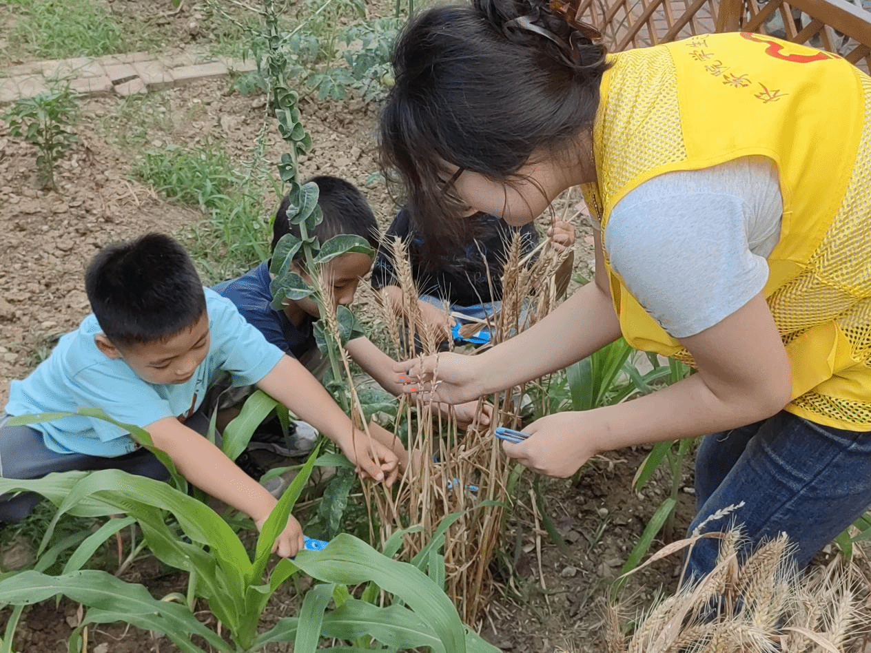 本网讯 五月的田野,麦浪初染金黄。在这充满丰收的季节,5月28日下午,农学院志愿者们走入安农大幼儿园开展第二十二期“耕读童行”志愿服务活动,带领小农娃们开展了一场别开生面的“收获作物与果蔬”的实践探索活动,其中的亲手收获小麦成为了最闪亮的实践课。