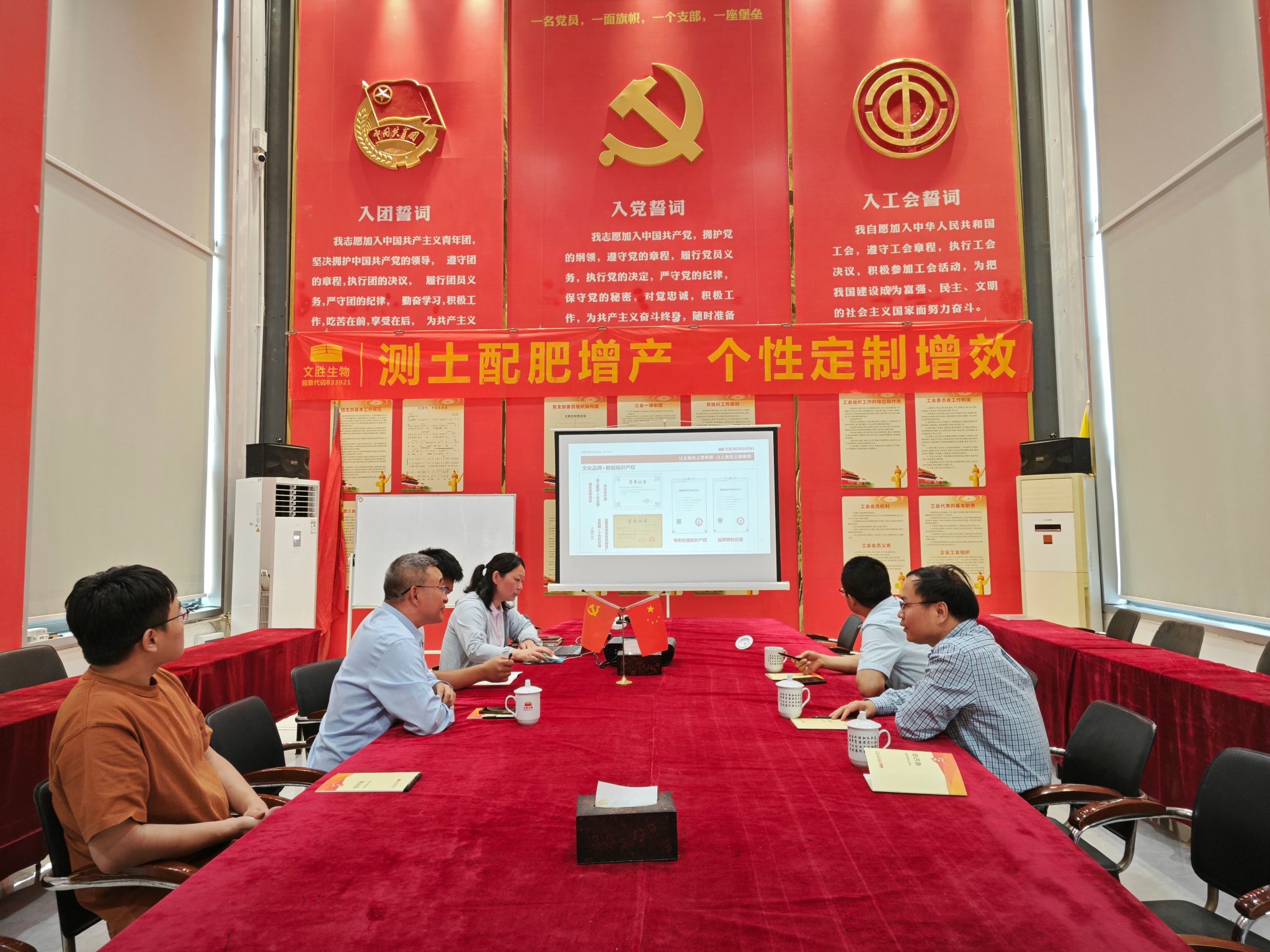 在交流座谈中,张应烙介绍了学院的基本情况,希望通过此次访企拓岗活动,了解企业发展现状和市场人才需求,不断提高人才培养质量;通过校企深度合作,为学生提供更多的实习、就业机会。文胜生物董事长李文胜对张应烙一行的到来表示热烈欢迎,副总经理徐恩静围绕产业数字化与数字产业化两者进行介绍,让学院一行对企业的业务模式与发展方向有了更清晰的认识。校企双方聚焦人才培养、成果转化、应用推广、共建实验室、联合申报项目等五个关键领域展开深入探讨,并达成广泛共识,随后举行了大学生就业实习基地挂牌仪式。