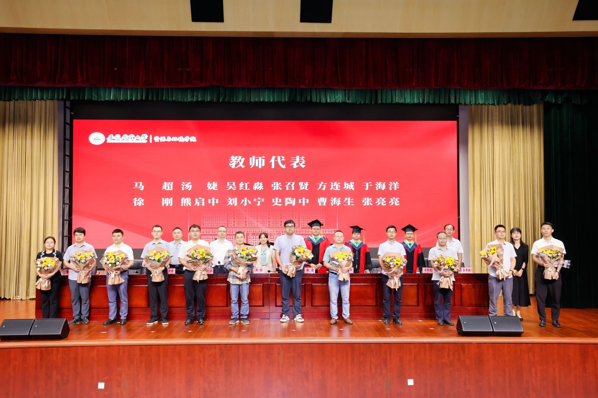 大会表彰了2025届省级、校级“优秀毕业生”。学院领导为优秀毕业生代表颁发荣誉证书,表彰其在学业科研、社会实践等方面的突出表现。学生代表向辛勤培育他们的教师代表敬献鲜花,表达深切感激之情,现场掌声如潮,气氛热烈。