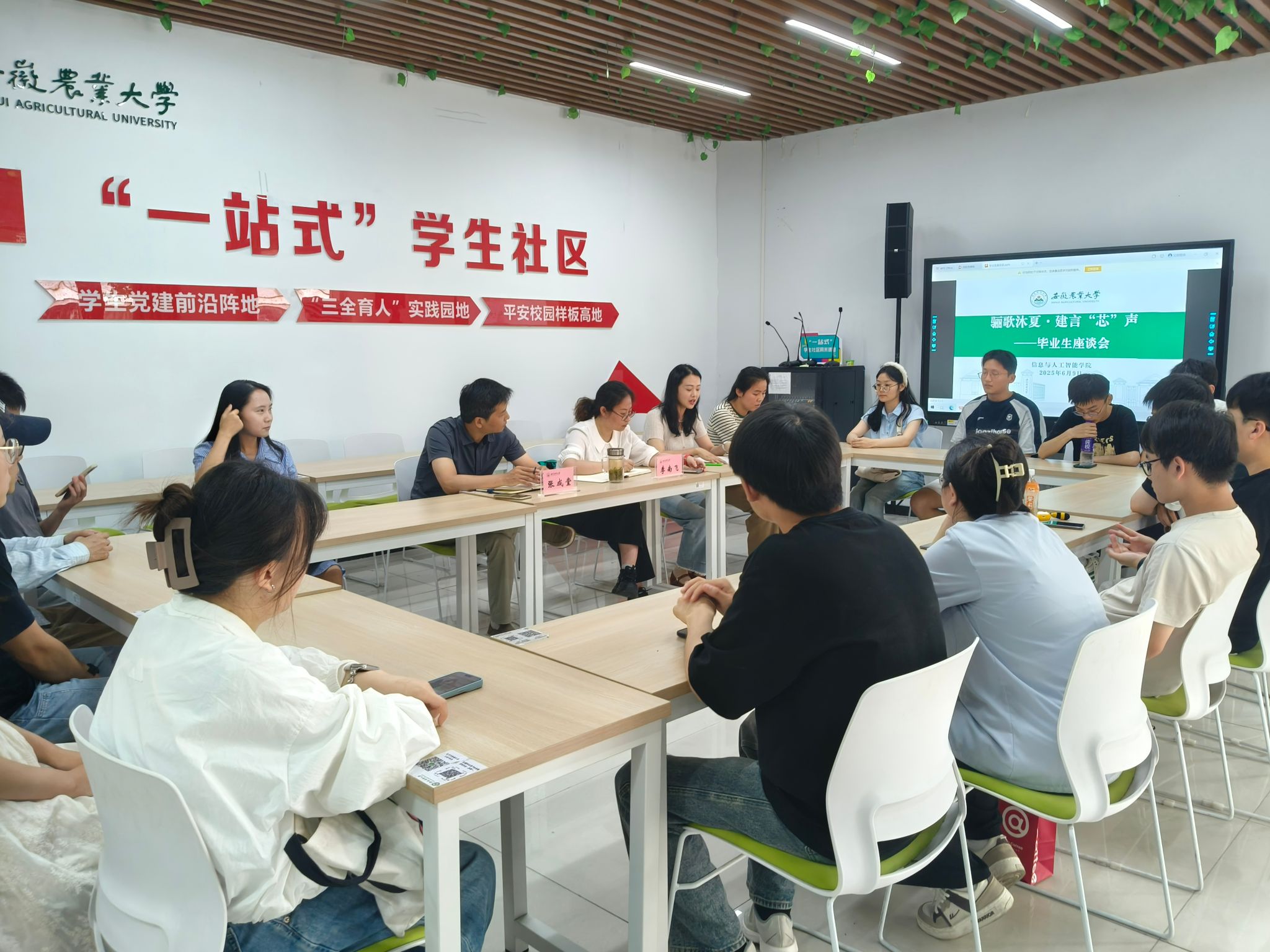 本网讯 骊歌轻起时,温情满校园。在2025届毕业生即将踏上人生新征程之际,信息与人工智能学院依托“一站式”学生社区,精心打造“骊歌沐夏 ‘芯’向未来”毕业季主题系列活动。通过座谈会、经验分享会、宿舍走访、安全教育、骨干欢送等五大暖心举措,为毕业生送上了一份饱含“芯”意的毕业礼,让离别的季节充满温暖与力量。