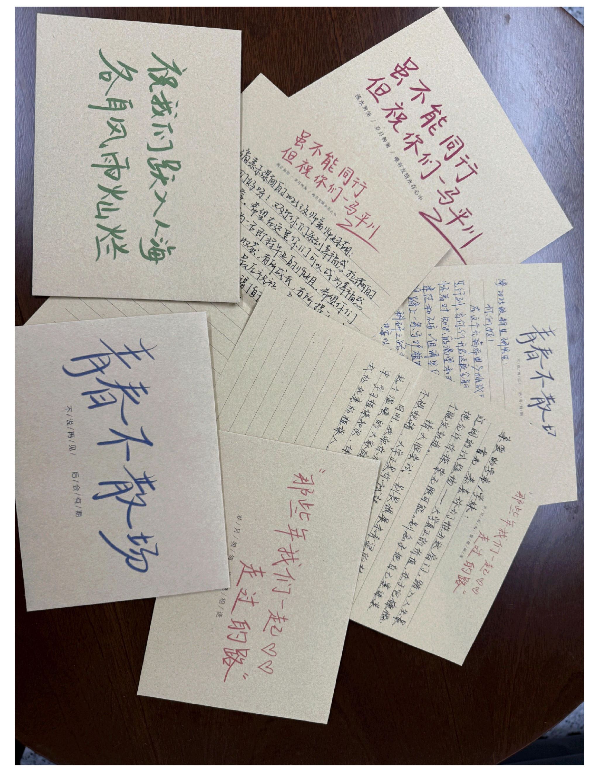 毕业生结合四年学习生活经历写出各具特色的内容,他们致恩师、致父母、致同窗、致自己、致新生……