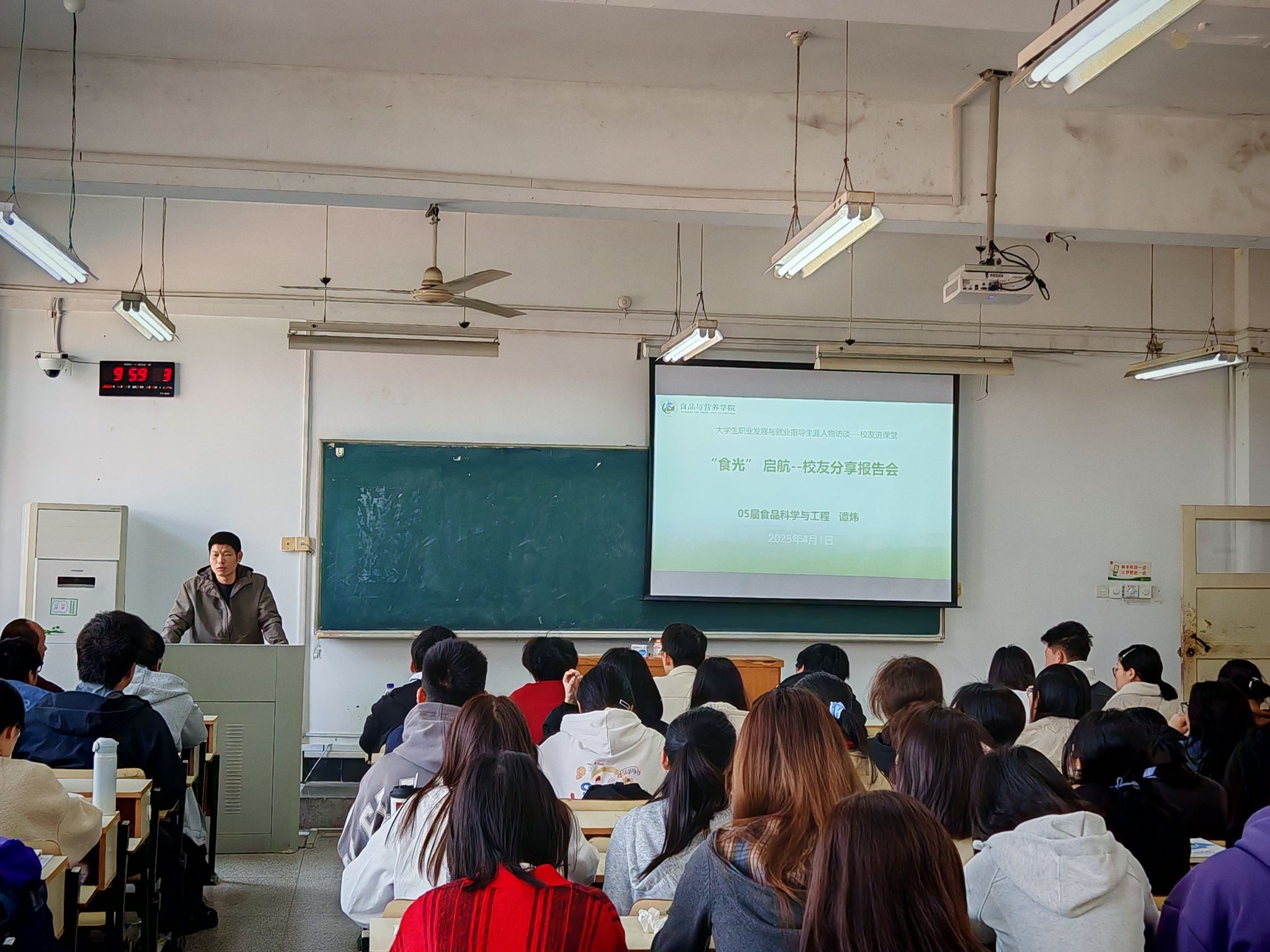 本网讯 4月1日上午,食品与营养学院邀请2005届食品科学与工程专业校友、安徽省食品药品检验研究院高级工程师谭炜走进《大学生职业发展与就业指导》课堂,与青年学生面对面,分享学习经历和工作经验。学院党委书记孙福主持报告会,2024级食品科学与工程专业本科生参加。