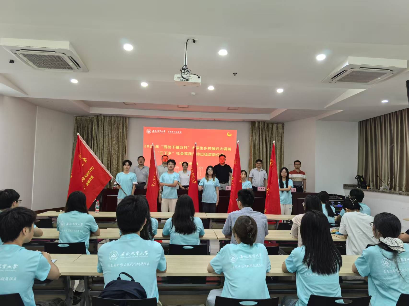 会议强调,参与实践的师生一是要坚定初心使命,深刻感悟新时代党和国家事业发展取得伟大成就,以青春之志书写篇章;二是要践行科教报国,努力为基层群众提供科技、教育、文化、卫生等方面的服务和支持,以青春之姿彰显风采;三是要矢志艰苦奋斗,锻炼自己的意志品质和团队协作能力,以青春之力挺膺担当。会上还为校级重点和校级团队进行了授旗。