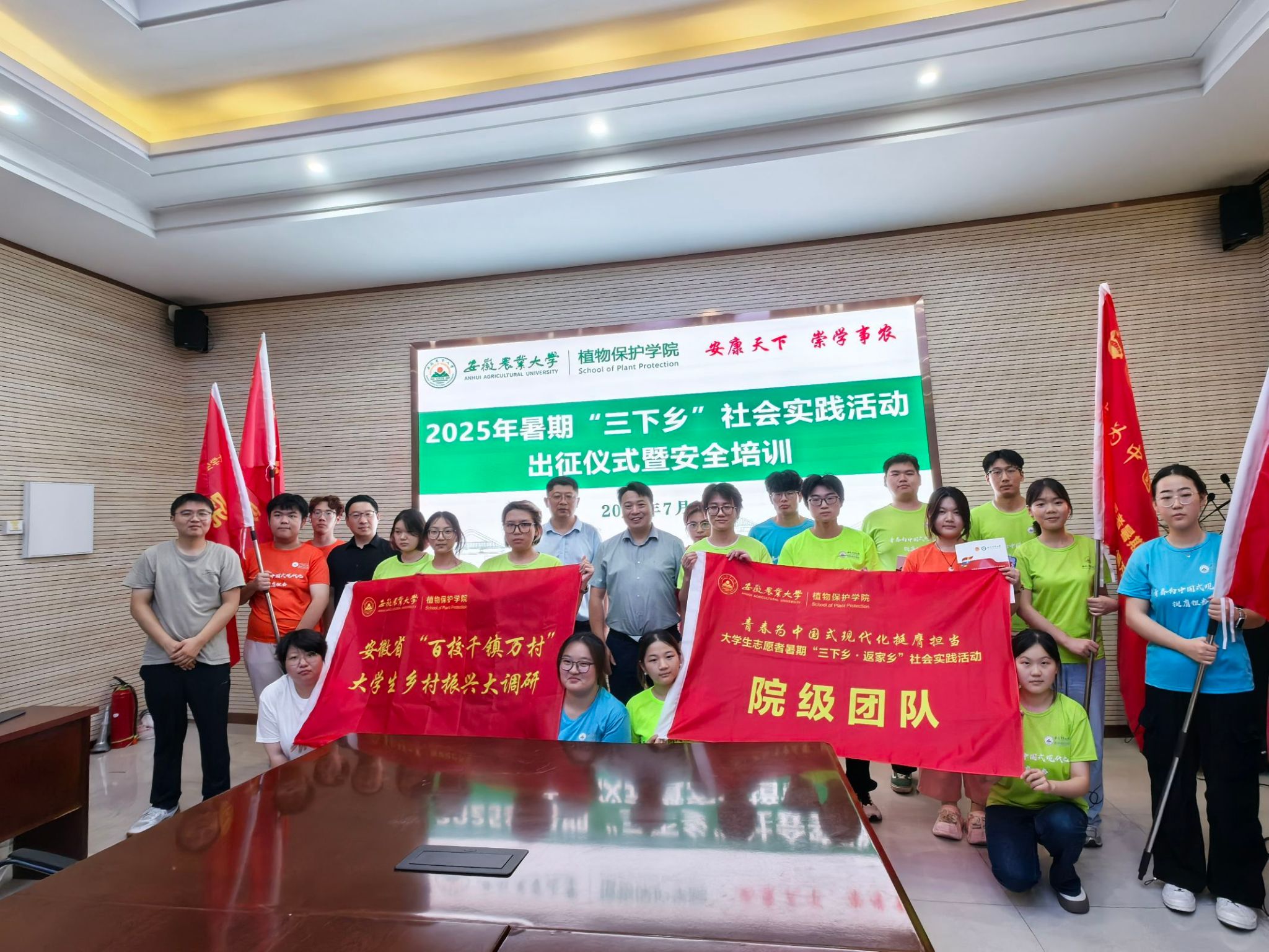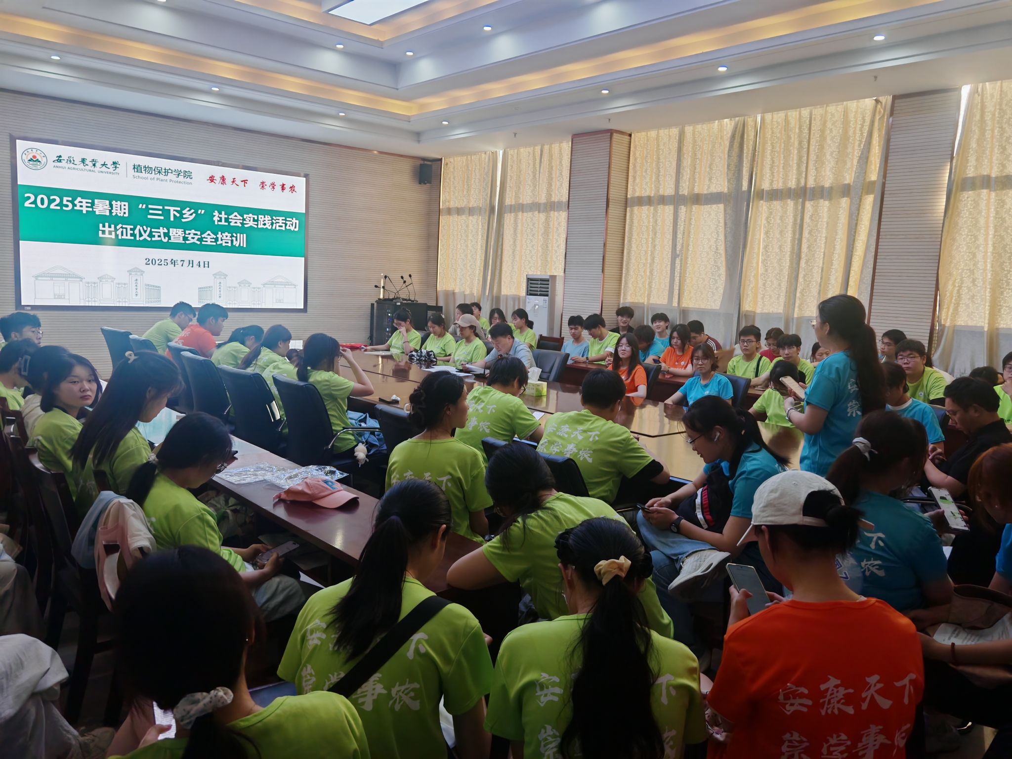 本网讯 7月4日下午,植物保护学院在中西部综合楼1213室召开2025年暑期“三下乡”社会实践活动出征仪式暨培训会,会议由学院党委副书记汪小强主持,学院副院长唐庆峰、各实践团队指导老师、团学负责人和各实践团队成员参会。