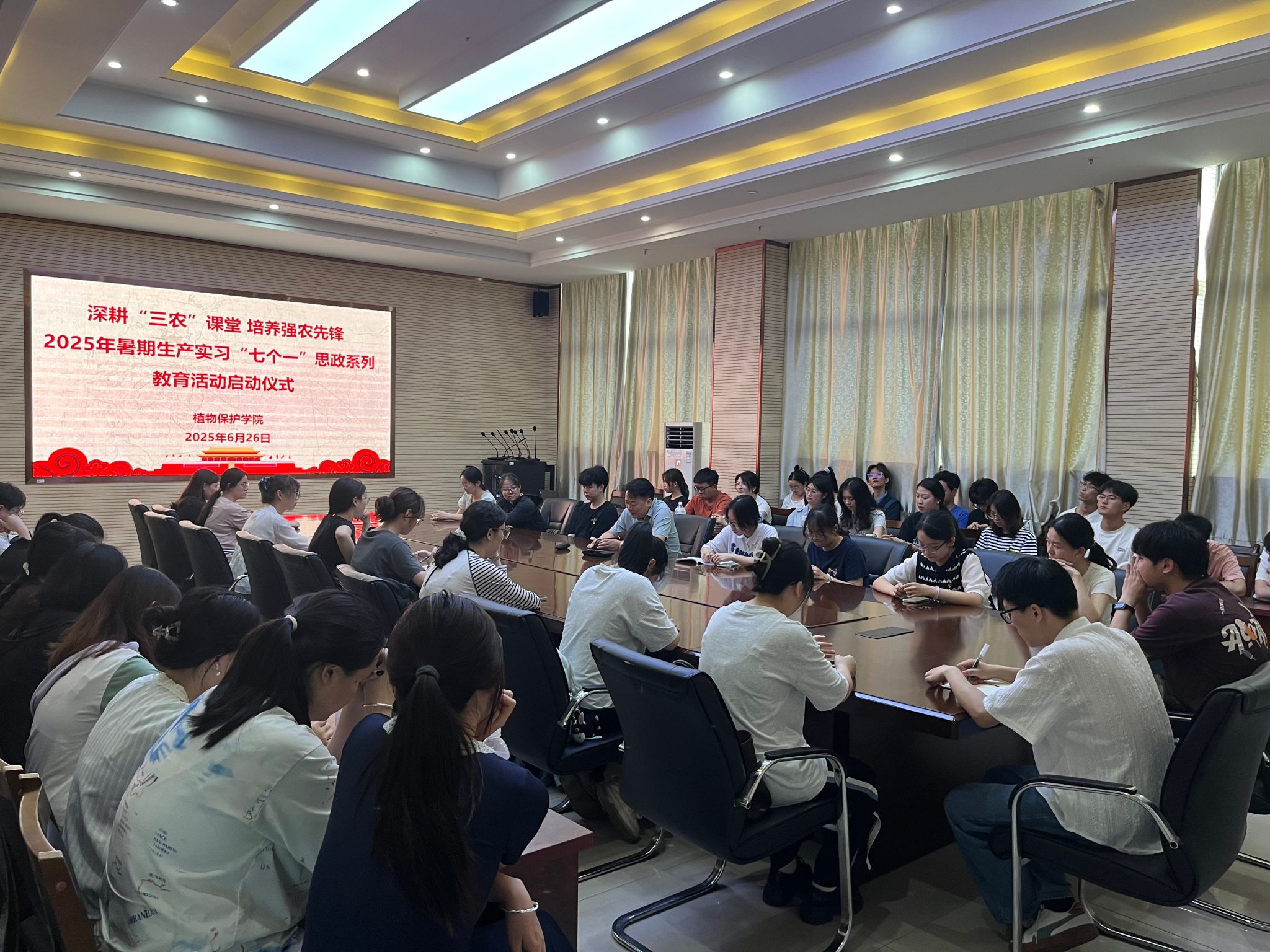 本网讯 近日,植物保护学院2025年生产实习“七个一”思政系列教育活动启动仪式在中西部综合楼1213会议室召开。会议由院党委副书记汪小强主持,学院2022级全体学生党员、入党积极分子和辅导员参会。