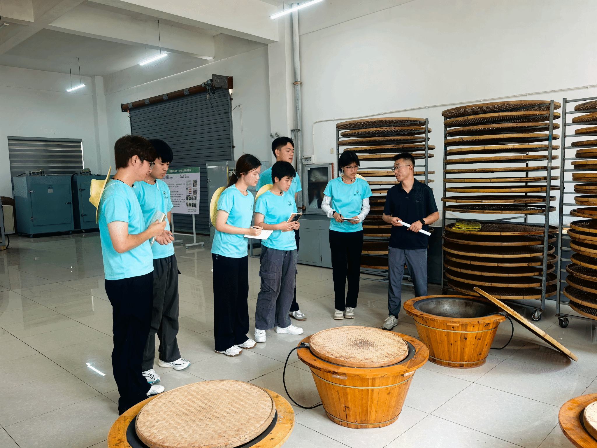 午后,团队前往皖南综合试验站。在茶叶生产车间,成员们亲身感受了传统茶叶工艺与现代科技的深度融合。从鲜叶萎凋到精制包装,太平猴魁、红茶等茶叶的现代化加工流程井然有序。站长详细介绍了 “太平魁红”这一创新工艺,该工艺借鉴祁门红茶发酵技术,为茶农带来了显著的增收效果,有力推动了当地茶叶产业的发展。在产学研座谈会上,实践团成员就高校科研成果如何更高效地服务农业生产实际需求,与试验站专家展开深入探讨。试验站与学校共建的农产品质量监测体系以及技术推广网络,为校地协同育人提供了生动范例,充分体现了 “校地协同育人” 的核心要义。