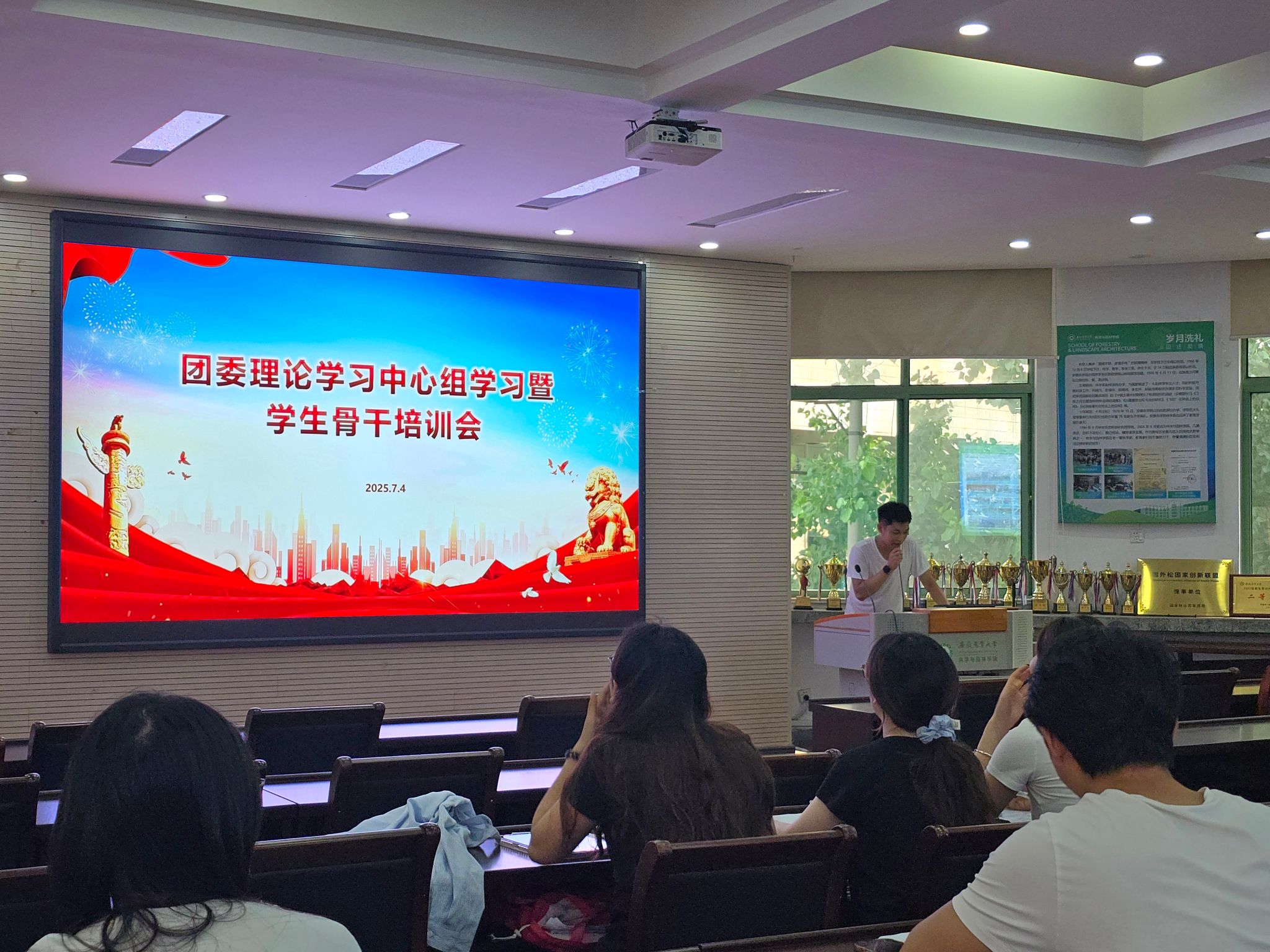 本网讯 7月4日中午,林学与园林学院在林学楼2楼报告厅开展团委理论学习中心组学习暨学生骨干培训会议。学院团学干部,青马班成员等参与了会议,会议由学院团学老师主持。