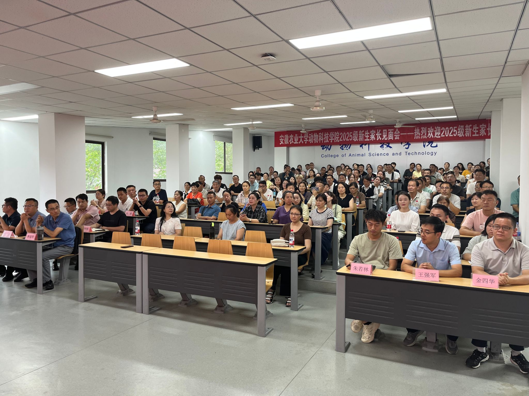 为深化家校协同育人,8月31日下午,学院在动科楼318举办 2025级新生家长见面会。学院领导班子全体成员、各系主任、2025级新生辅导员及160多名新生家长参会。会上,与会领导与系部教师围绕学校与学院的办学沿革、学科建设、科研成果、师资队伍、人才培养等方面展开详细介绍,同时针对动物科学、水产养殖学两个专业的培养目标、课程设置、就业方向进行具体解读,不断加强家校合作,共同促进学生成长成才。