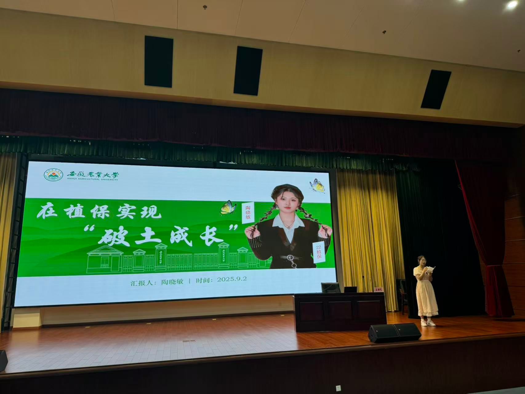 学术科研代表23级植物保护专业博士研究生孙家智分享了研究生阶段学习经验;学习标兵和学科竞赛代表22级植物保护专业陶晓敏以“在植保实现‘自我成长’”为题,为新生提供了学习规划与科研实践的相关经验;三下乡和社会实践代表23级植物保护专业陈惠琳以“我们的夏天,与乡村的一场‘双向奔赴’”为题,着重分享了暑期“三下乡”社会实践和志愿服务相关内容;文体和宿舍文化建设代表23级智慧农业专业童军以“怀热忱逐梦、秉初心笃行”为题,分享了宿舍文化建设和文体活动方面的丰富实践。