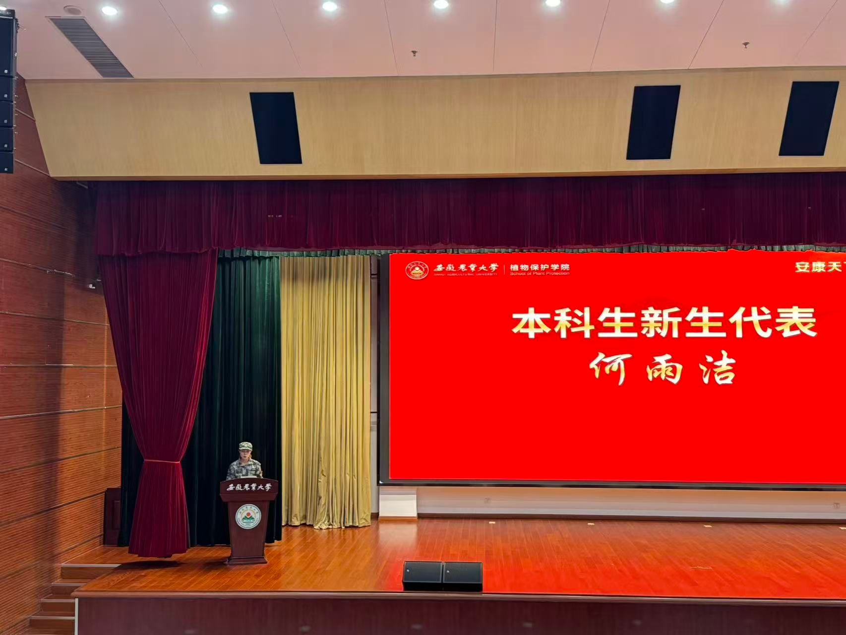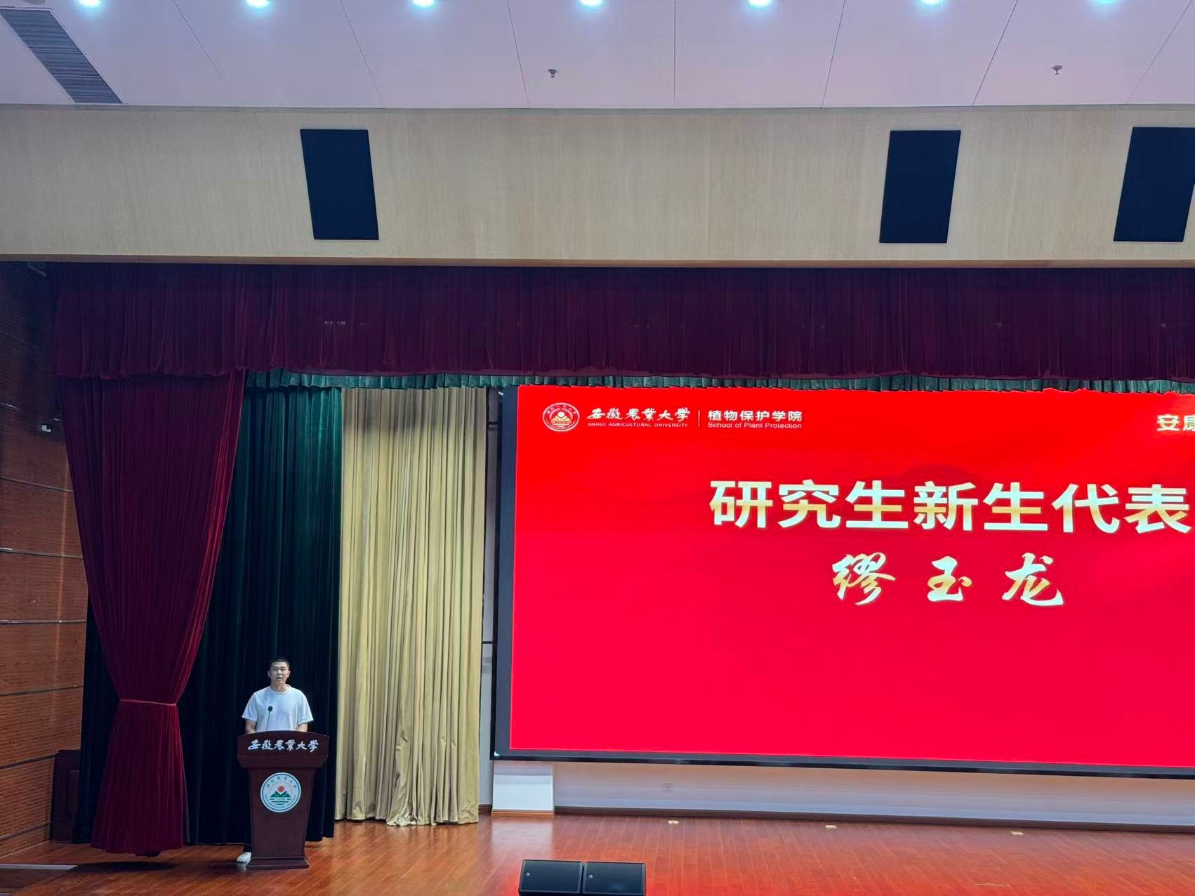 研究生缪玉龙和本科生何雨洁作为新生代表发言,纷纷表达了对植保专业的热爱与期待,表示将以昂扬的姿态投入到未来的学习与生活中,不负青春、不负使命。
