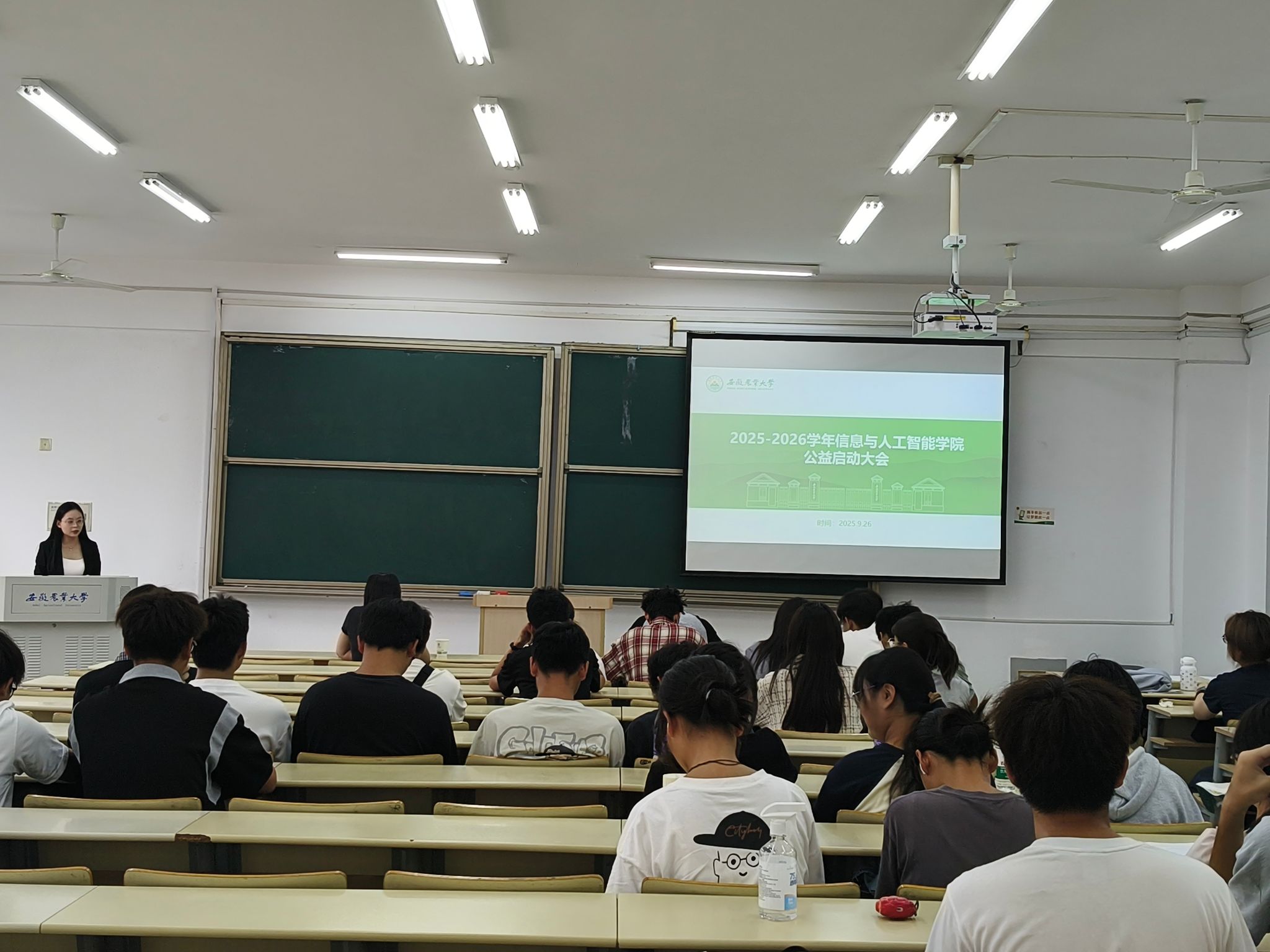 本网讯 9月26日,信息与人工智能学院在208教室举行2025-2026学年公益活动启动大会。学院奖助工作负责老师、团学老师,100余名师生代表参加了会议。