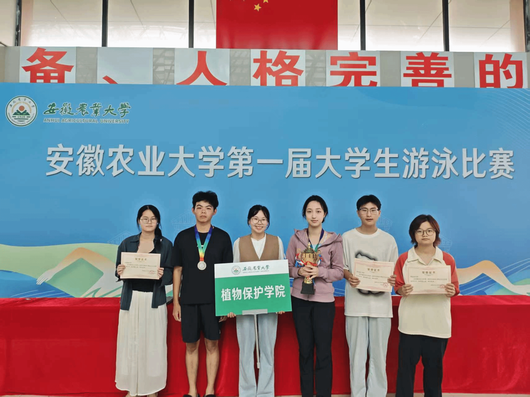 本网讯 近日,安徽农业大学第一届大学生游泳比赛在安农游泳馆圆满落幕。植物保护学院参赛学子凭借扎实的竞技功底与顽强的拼搏意志,在赛事中奋勇争先,以总分排名第五的成绩完美收官。