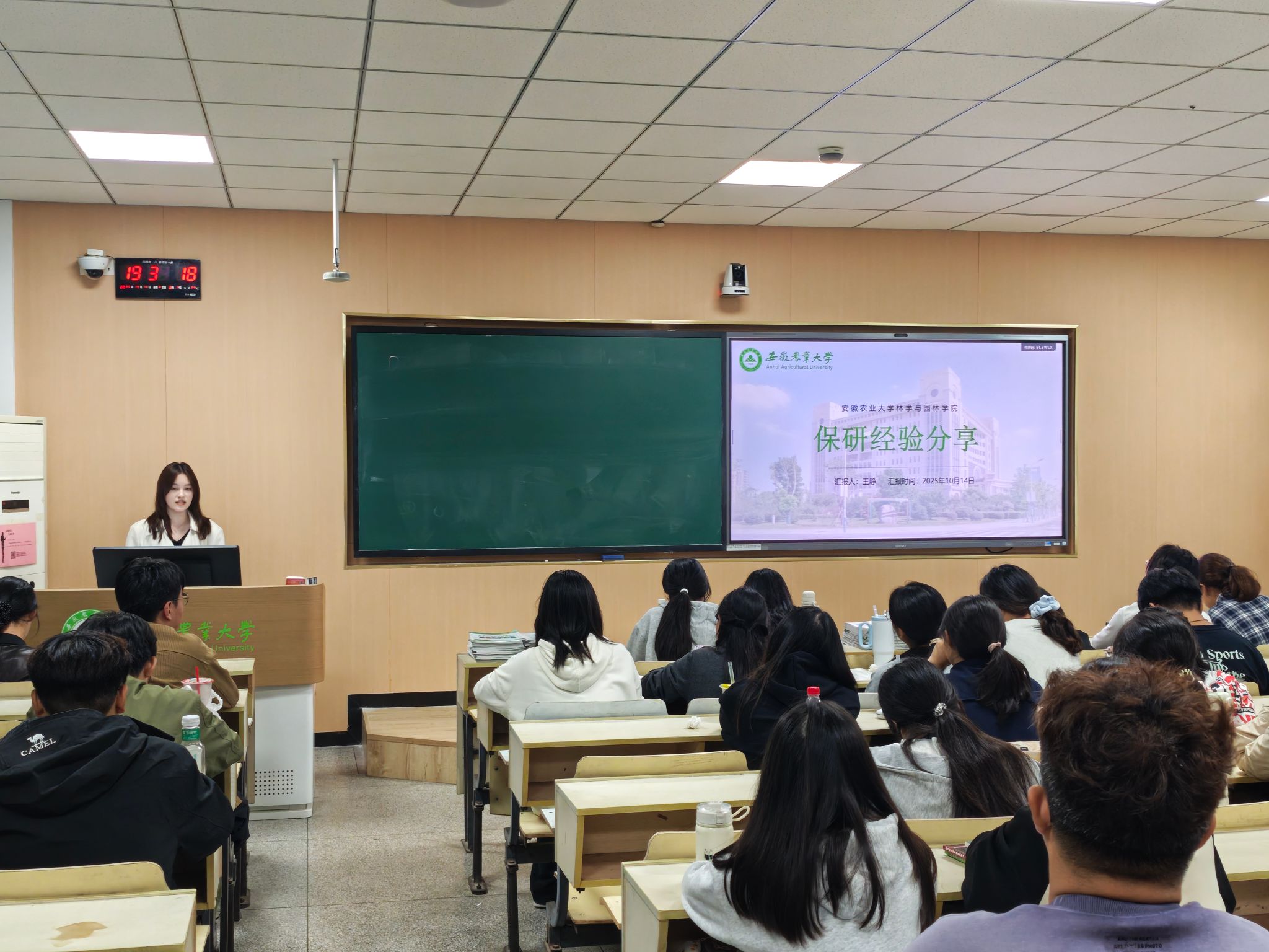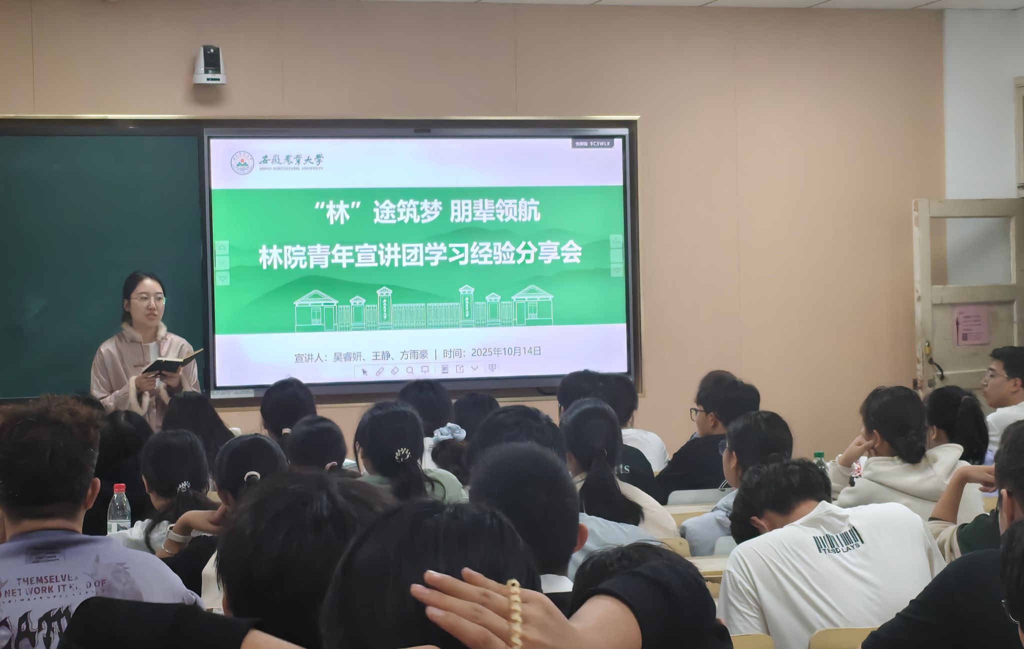 本网讯 为引导2025级新生科学规划大学生活,明确学习目标,汲取优秀学子的宝贵经验,10月14日晚,林学与园林学院面向2025级林学专业新生组织举办了“‘林’途筑梦,朋辈领航”林院青年宣讲团学习经验分享会。活动特邀三位已成功保研的2022级林学专业优秀学生进行分享,2025级林学专业全体学生参加活动。