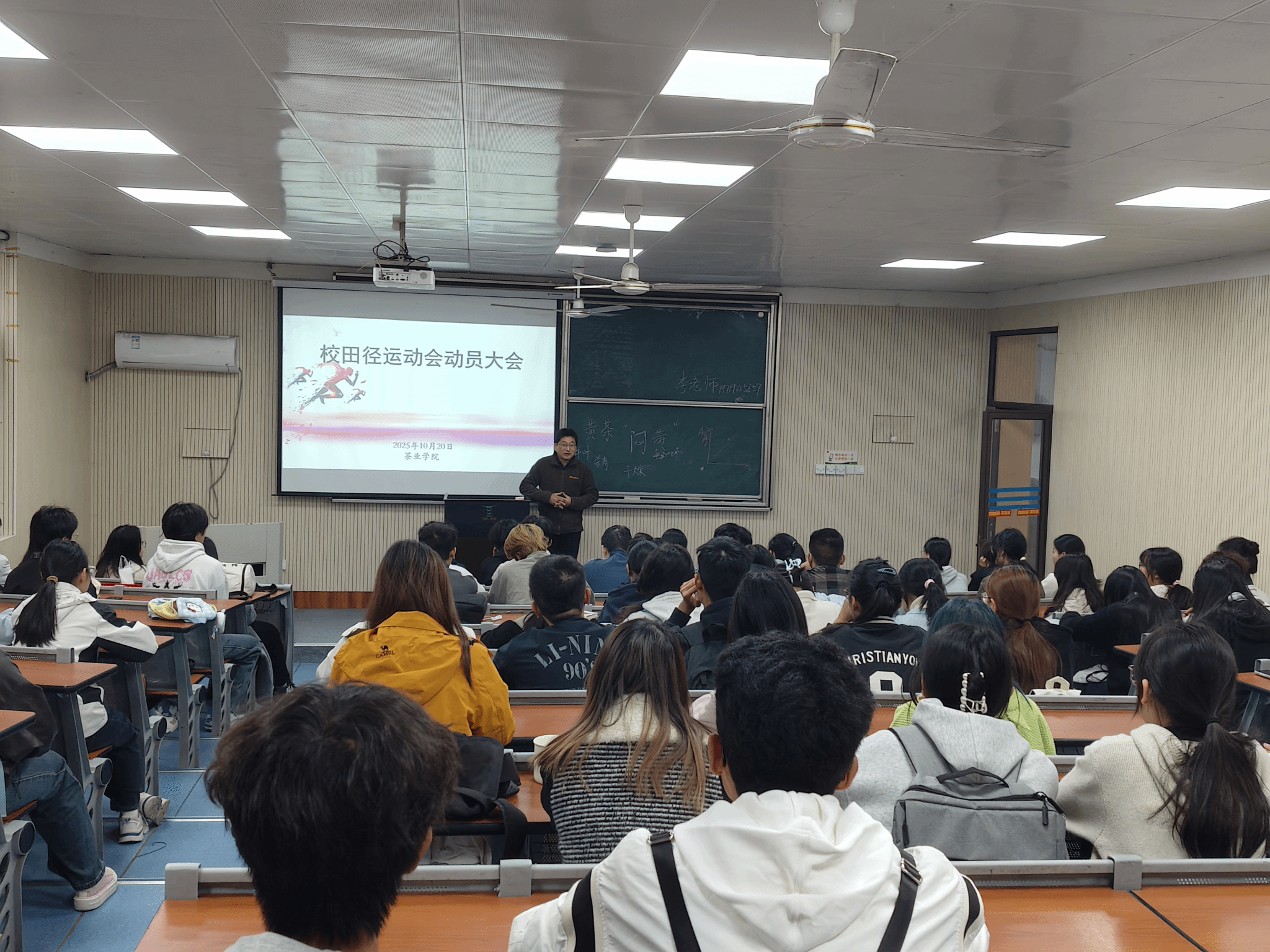 本网讯 10月20日,为鼓舞士气、迎接即将到来的校运动会,茶业学院在茶业楼1992教室召开了运动会动员大会。学院党委副书记沈周高、院团学负责老师、志愿者以及全体运动员参加此次会议。
