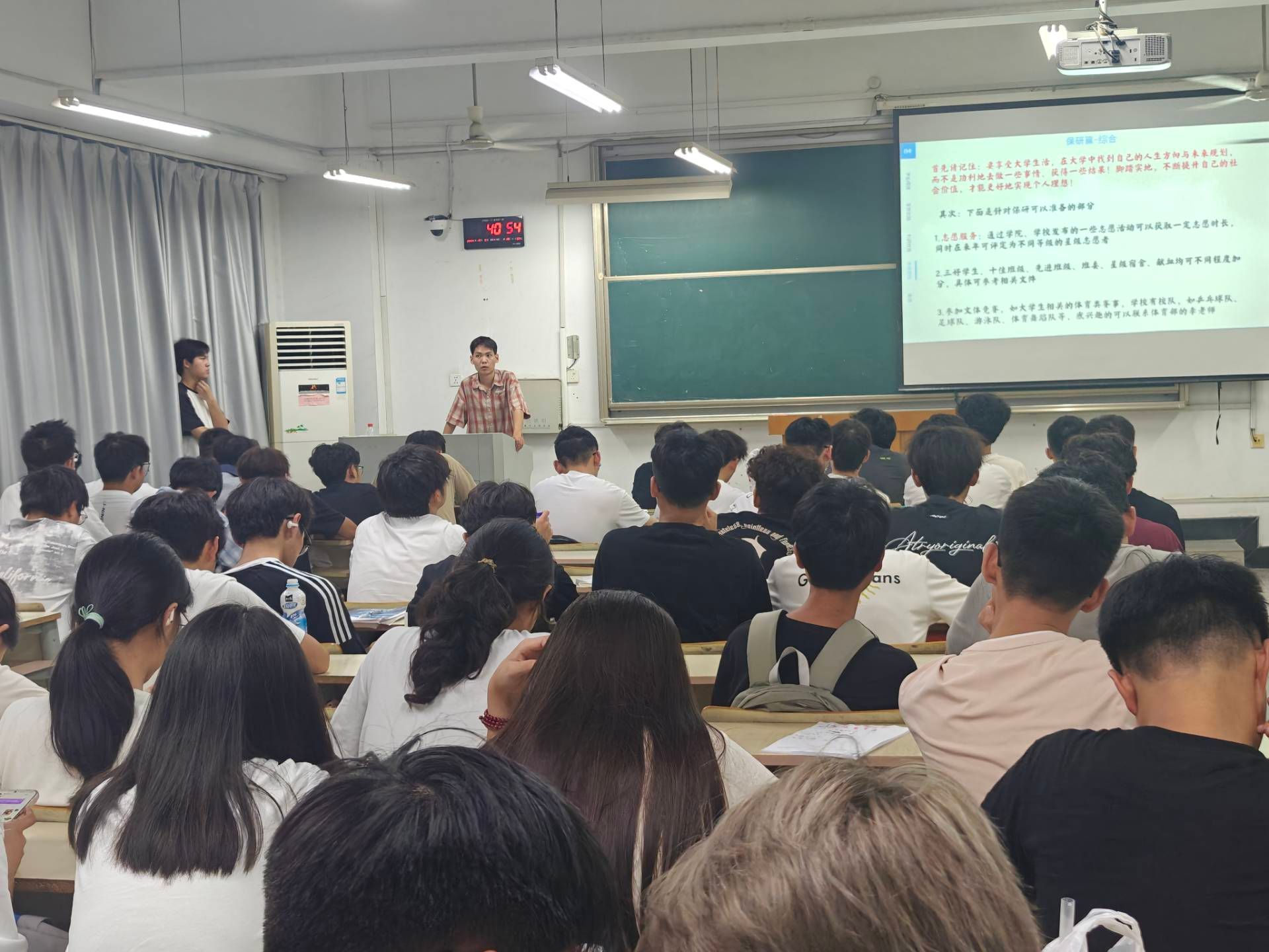 活动现场气氛热烈。推免至合肥工业大学的王洋学长以“目标引领与时间管理”为主题,结合自身三年来的高效学习与实践经历,详细阐述了如何从大一开始进行长线规划。“尽早明确方向,并持之以恒地付出努力,是走向成功的关键。每一分耕耘都将在未来某个时刻回馈于你。”