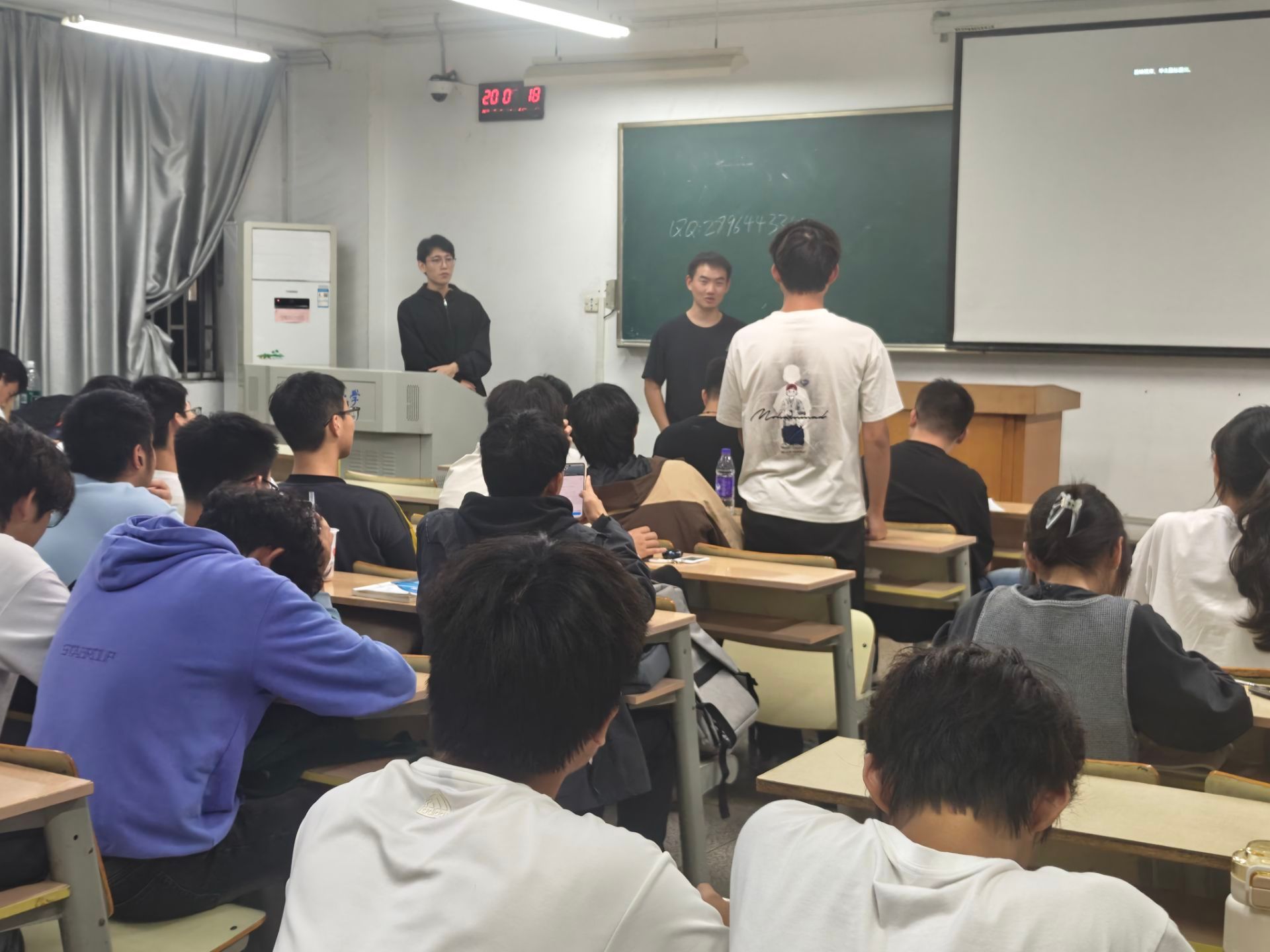 在自由交流环节,新生们踊跃提问,学长学姐们结合切身经验给予了细致解答和实用建议。针对同学们关注的学科竞赛问题,吕轩学长回答道:“学科竞赛是锻炼创新思维和团队协作能力的宝贵平台。建议大家从大一开始就主动关注各类竞赛信息,积极寻找志同道合的伙伴,在实战中不断提升专业能力。我个人的经验是,不要害怕失败,每一次参赛经历都是成长。”现场互动频繁,掌声不断。