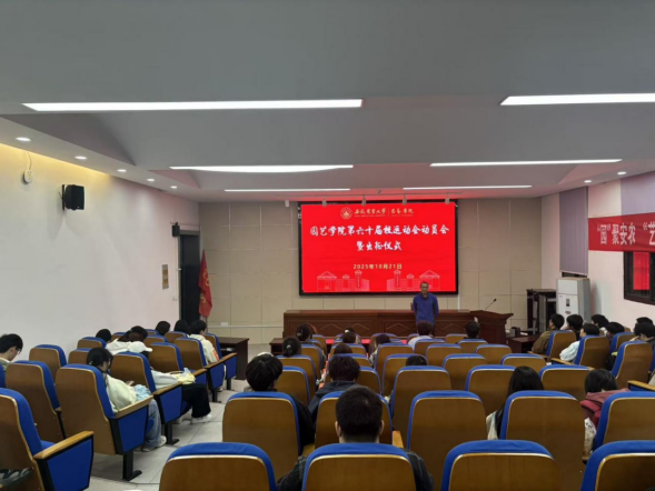 本网讯 为积极备战校第60届田径运动会,激发参赛运动员的斗志与激情,10月21日晚,园艺学院在江淮园艺报告厅举办第60届校田径运动会动员会暨出征仪式。学院党委副书记、纪委书记、田径运动队教练叶辉,全体田径运动员、学生会干部及后勤保障等人员参加了仪式。