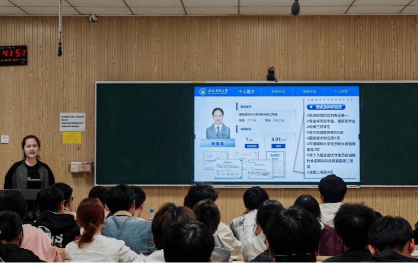 会议特邀纺织专业大四优秀学生骨干秦光正、张慧茹担任分享嘉宾。他们结合自身经历,围绕学习方法、保研准备及日常生活实践等方面,与在场新生展开真诚而生动的交流。秦光正同学分享了本科期间的学习规划与未来发展方向,鼓励学弟学妹坚定目标、勇毅前行;张慧茹则介绍了专业学习技巧、科研经历及获奖心得,为大一新生今后的学业发展与科研之路提供了有益参考。