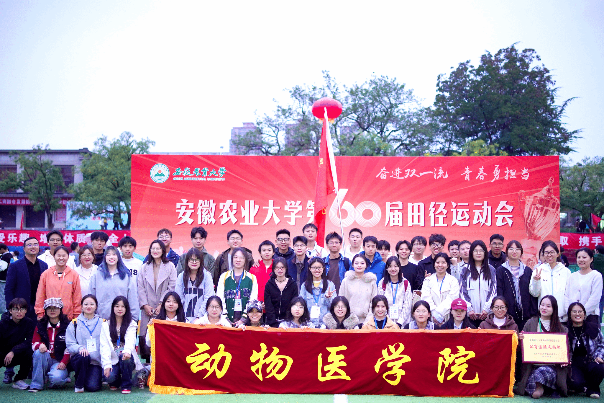 本网讯 10月23日至25日,我校第60届田径运动会与第11届趣味运动会圆满举行。动物医学院学子以昂扬斗志与出色表现,在赛场上展现风采,荣获体育道德风尚奖,并在趣味运动会中斩获滚铁环项目冠军与拔河项目季军。