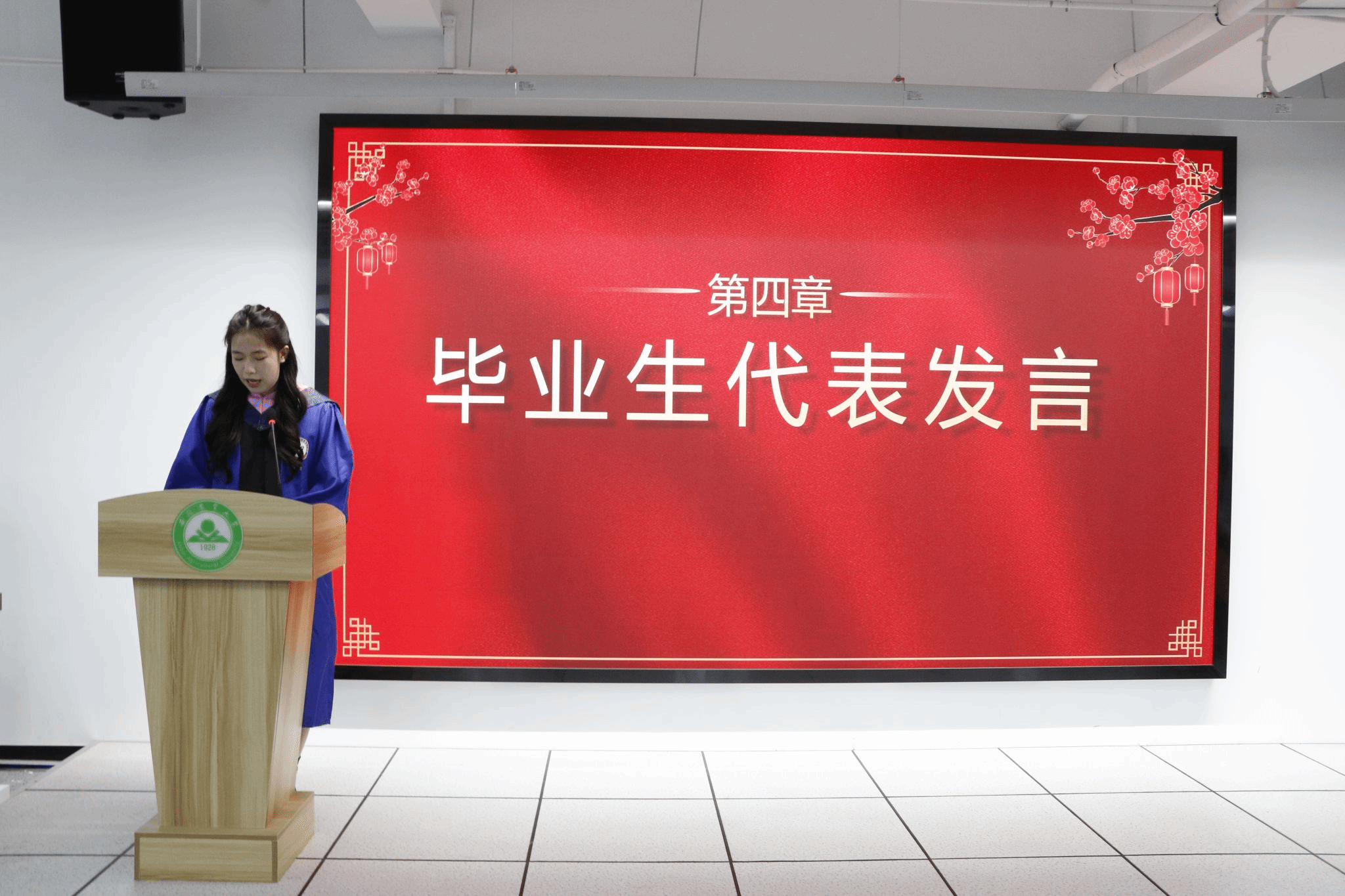 优秀毕业生代表洪千禧上台发言,她向学院领导、老师和家长们表达了衷心的感谢,并分享了自己在校期间的学习心得与成长感悟,表示未来无论身处何地、从事何种职业,都将牢记学院的教诲,以马克思主义理论武装头脑,努力践行社会责任,为传播马克思主义真理、推动社会进步贡献自己青春力量。