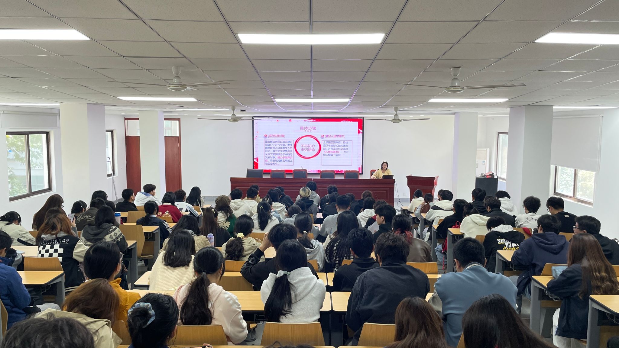 2022级动物科学专业学生党员张灵霜同志围绕党团发展历程与发展程序等内容作主题宣讲。她结合学习与实践经验,系统介绍了党团组织的光辉历程与规范程序,引导在场同学进一步增强对党团组织的认同感与归属感。