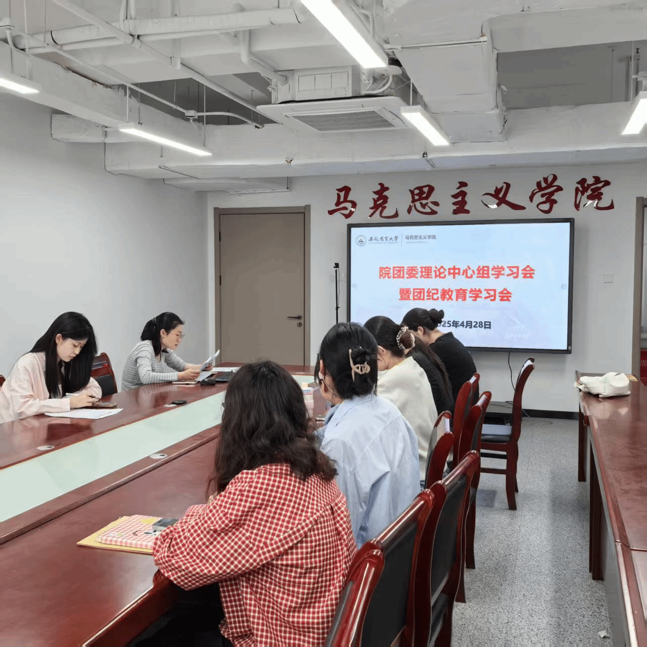 本网讯 为加强团员纪律教育,提升团组织的凝聚力和战斗力,4月28日下午,马克思主义学院在1010会议室举办了院团委理论学习中心组暨团纪教育专题学习会,会议由学院团学负责人孙刘琴主持,学院全体团干参加会议。
