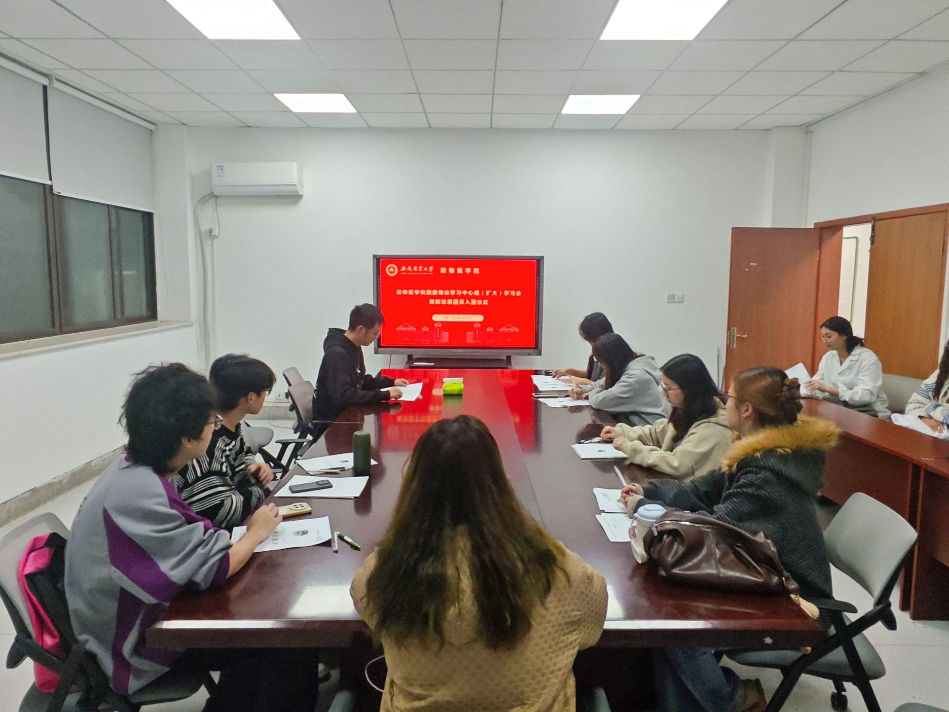 本网讯 10月30日,动物医学院在动医院308教室召开团委理论学习中心组学习会暨2025年下半年新发展团员入团仪式。学院团委老师、各团支部书记代表及全体新发展团员共同参会。