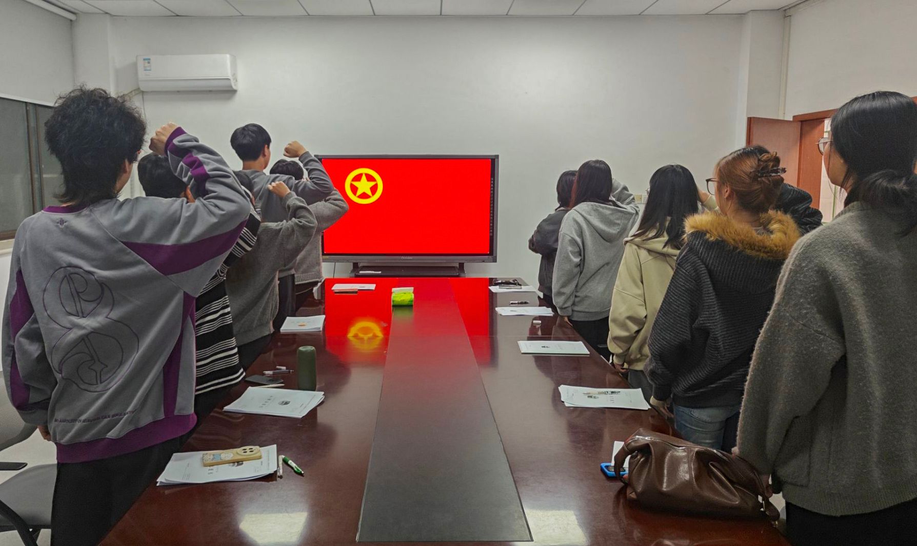 随后,在庄严的团旗前,新团员们高举右拳,郑重宣誓。铿锵有力的誓言在会场内回荡,表达了他们坚定跟党走、奋进新征程的信念与决心。