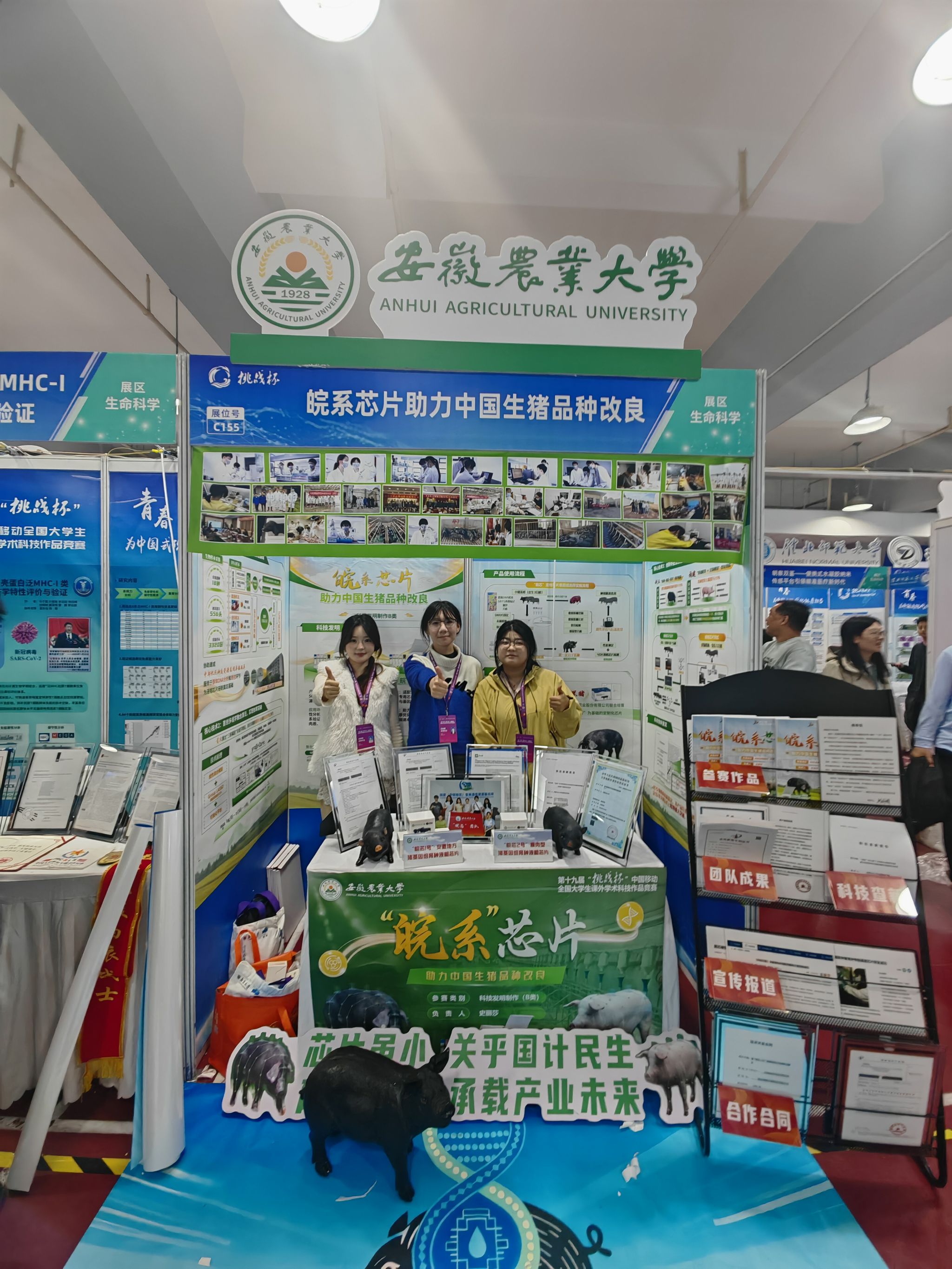 本网讯 10月31日-11月3日,第十九届“挑战杯”中国移动全国大学生课外学术科技作品竞赛在南京大学举行。来自全国2700多所高校的优秀学子齐聚一堂、同场竞技。经过激烈角逐,由我院郑先瑞老师指导的作品《皖系芯片助力中国生猪品种改良》在300多万名学生的40余万件作品中脱颖而出,荣获全国二等奖。