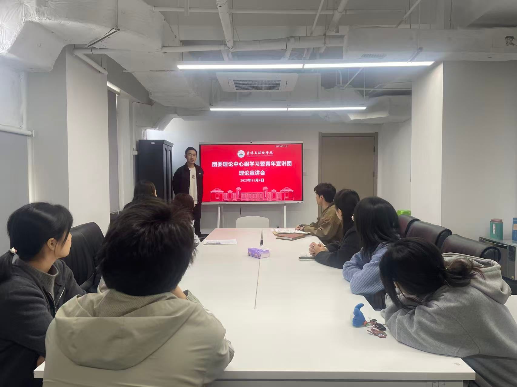 本网讯 11月4日,资源与环境学院举办团委理论学习中心组会暨青年宣讲团理论宣讲,团委中心组成员和新生团支书参加会议,会议由团学负责人主持。