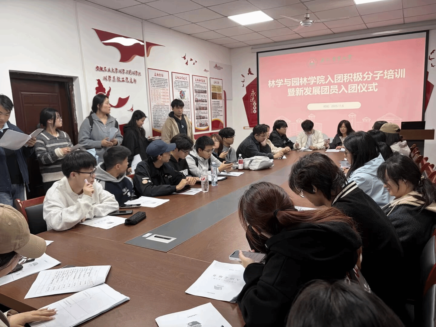 本网讯 为进一步加强共青团组织建设,切实提升青年学生思想政治素养。11月6日,林学与园林学院在林学楼106教室举行入团积极分子培训暨新发展团员入团仪式。学院团委老师及全体新发展团员参加活动。