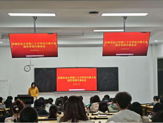 本网讯 为全面总结园艺学院学生会、研究生会过去一年的工作进展,部署安排下一阶段工作,强化学生组织建设,11月10日晚,安徽农业大学第二十次学生代表大会园艺学院学生代表会议在二教201、230顺利举行。各年级本科生、研究生全体代表出席大会,会议由团学工作指导老师主持。