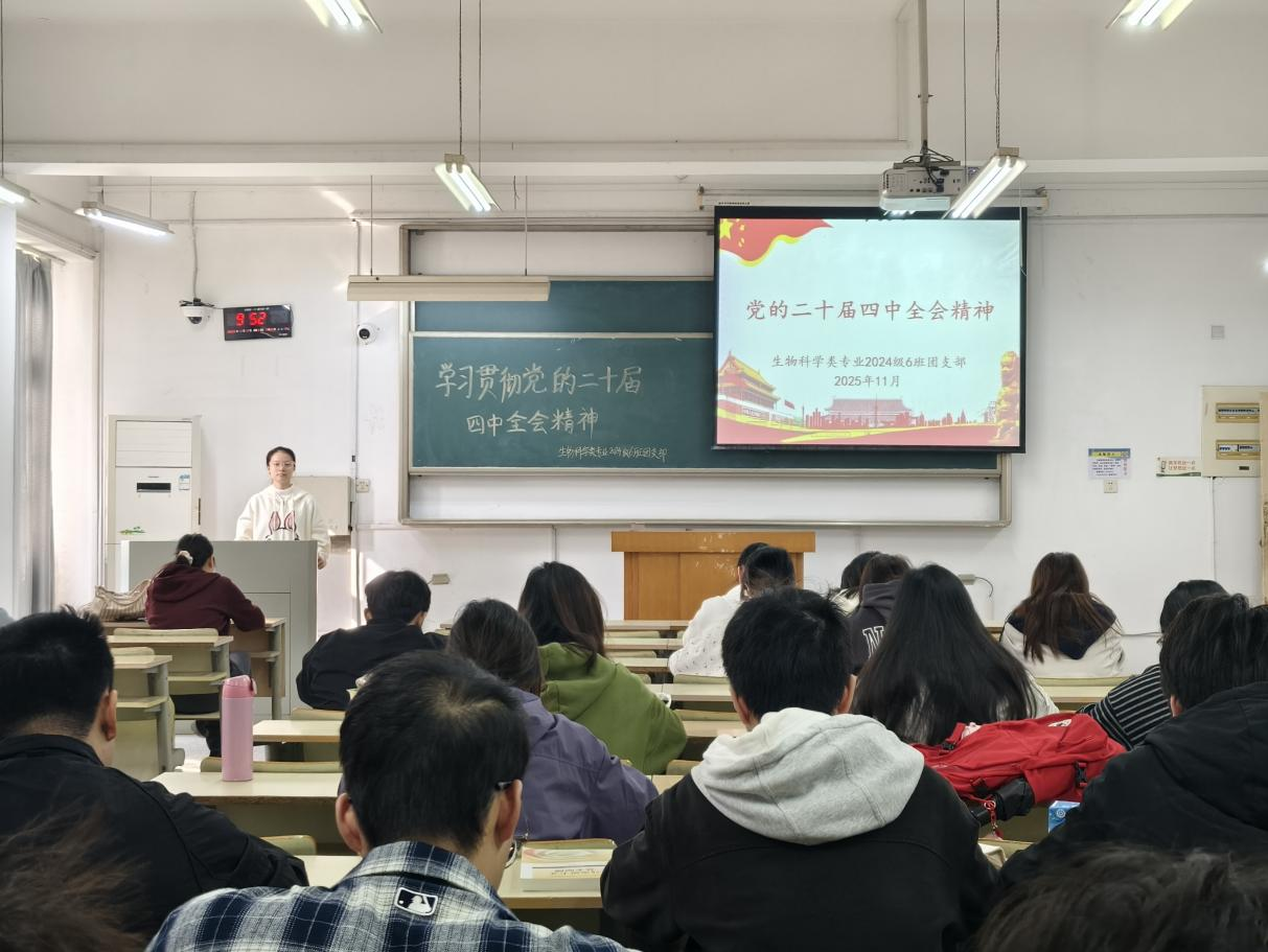 本网讯 为深入学习贯彻落实党的二十届四中全会精神。生命科学学院团委精心组织、广泛动员各学生团支部开展了“学习贯彻党的二十届四中全会精神”主题团日活动。活动期间,各团支部积极响应、迅速行动,充分发挥主动性和创造性。通过组织召开专题学习班会、分享交流等多种形式,引导广大青年学习会议公报和重要决定,深刻把握其核心要义与精神实质。