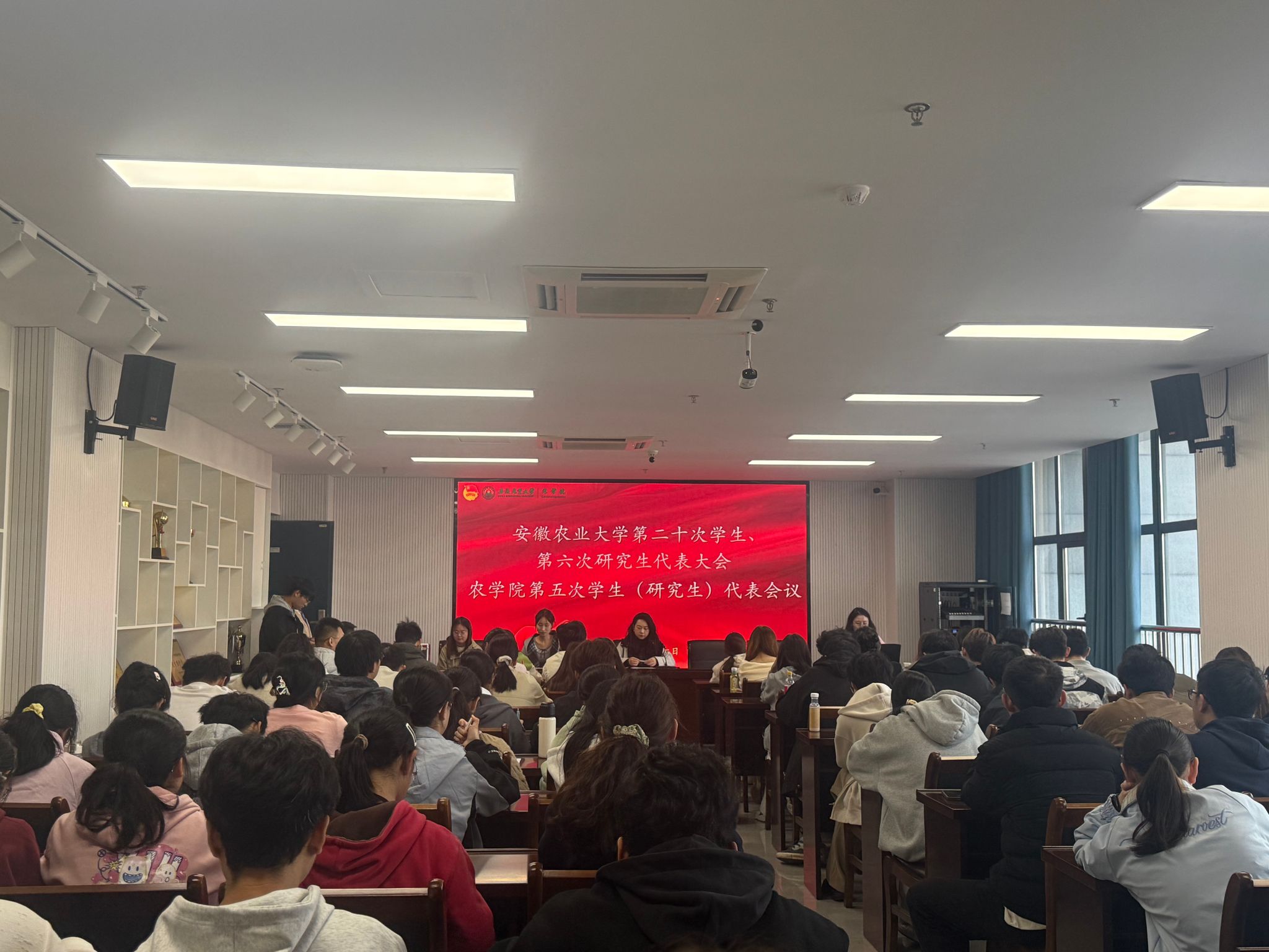 本网讯 为进一步加强农学院学生会、研究生会组织建设,规范学生、研究生代表大会制度,11月10日,农学院在朝阳楼202会议室召开第五次学生、研究生代表会议。农学院党委副书记、纪委书记柳洁、农学院团学工作负责人范宇、农学院新一届学生、研究生会主席团候选人及出席安徽农业大学第二十次学生、第六次研究生代表大会候选人、全体学生代表出席会议。