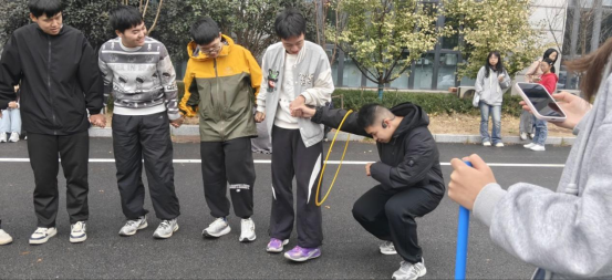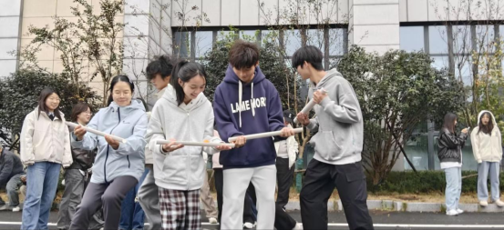 活动以 “破冰前行,融心聚力” 为主题,精心设计了五大互动环节。“不倒森林” 中,同学们围成一圈默契配合,在立杆的起落间锻炼反应能力与团队协作;“你划我猜” 环节里,比划者的生动演绎与猜题者的脑力碰撞相映成趣,肢体语言与默契配合让陌生感悄然消散;“逛校园” 游戏中,大家轮流说出校园地名,在轻松问答中快速熟悉校园环境;“一圈到底” 和 “传小球” 项目则考验着小组的肢体协调性与信任度,同学们手拉手传递套圈、搭建轨道运送小球,在协作中拉近彼此距离。