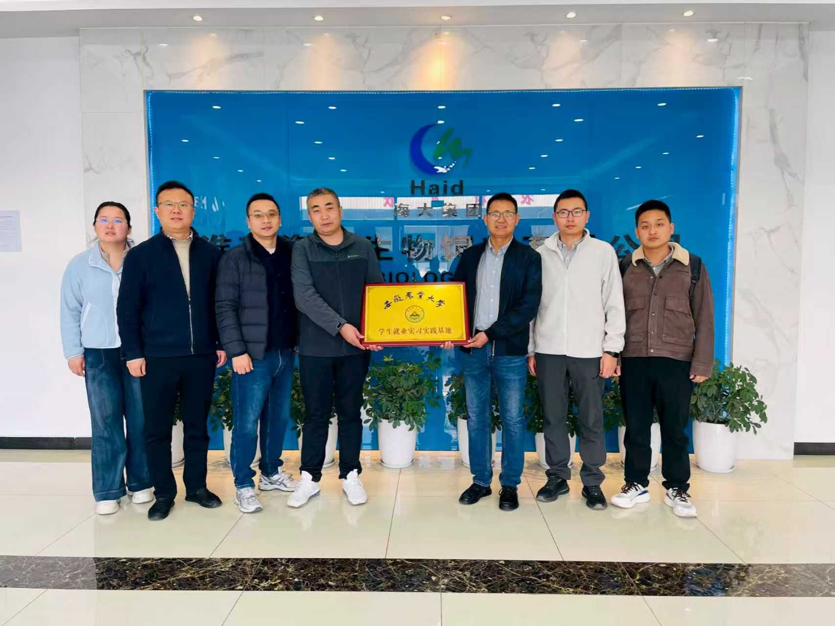 本网讯 为深化产教融合,助推毕业生高质量就业,11月15日,学院党委副书记卢伟、动物营养与饲料科学系主任张成等一行赴淮南海大生物饲料有限公司开展“访企拓岗”专项行动,并举行“安徽农业大学学生就业实习实践基地”挂牌仪式。淮南海大生物饲料有限公司厂长赵彬、品控经理裴楠东及人力资源及生产部门等相关负责人出席活动。